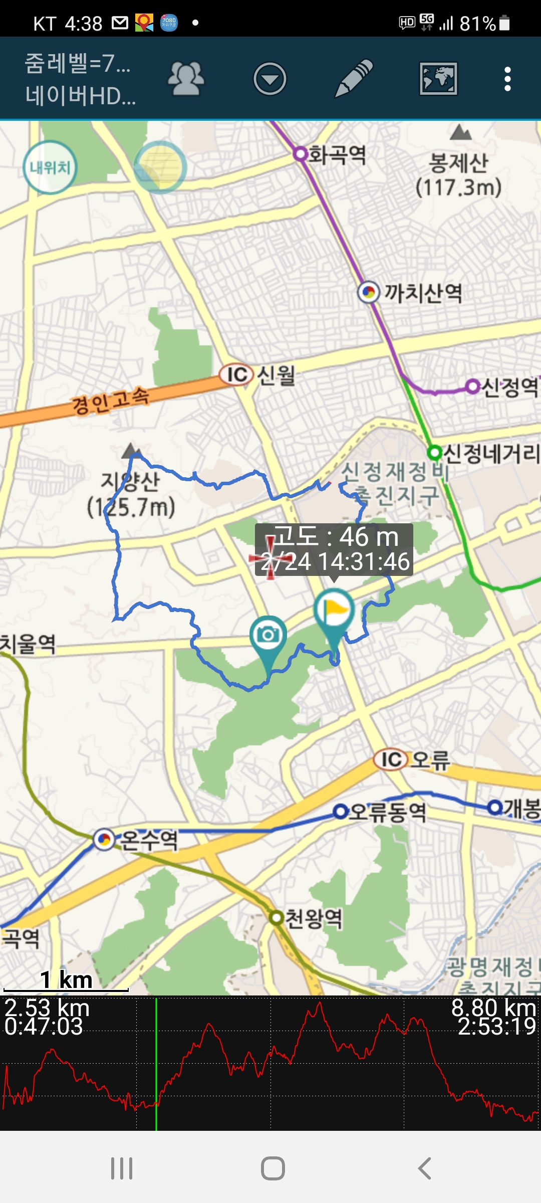 힘겹게 장군봉을 오르고 다시 지양산으로 올라 시영아파트로 내려 집에 도착하니 3시간이 소요된다.