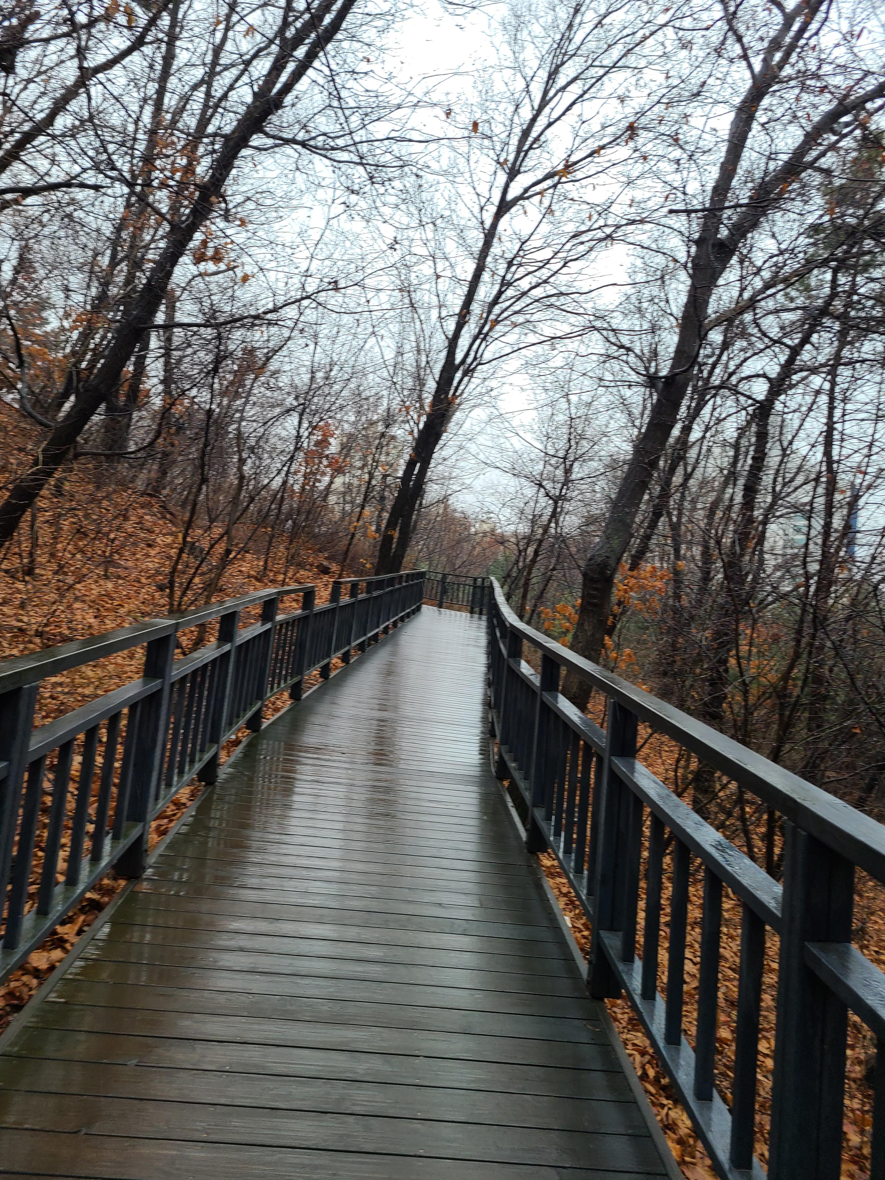 점심후 비가 내리는 산길을 호젓하게 걸어본다.