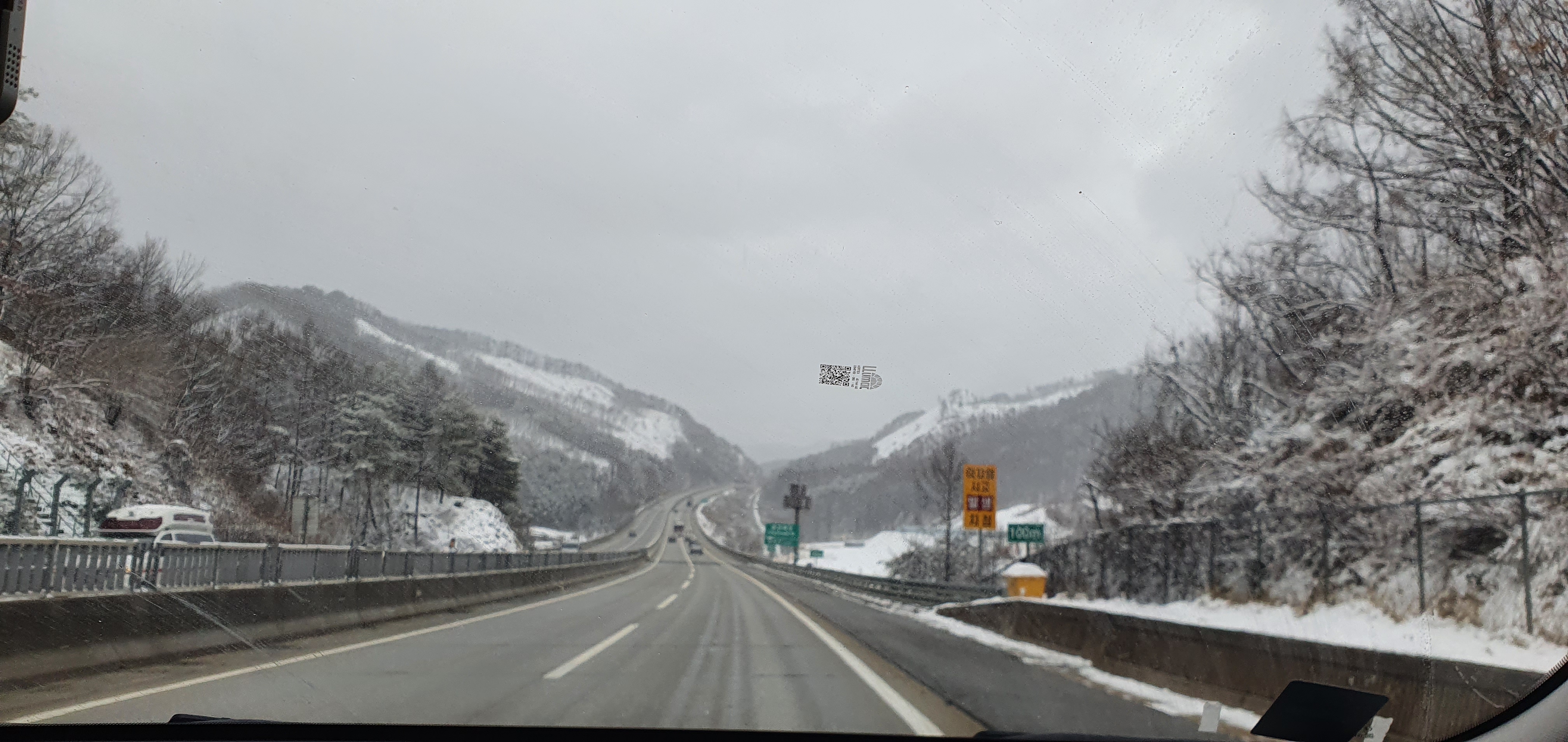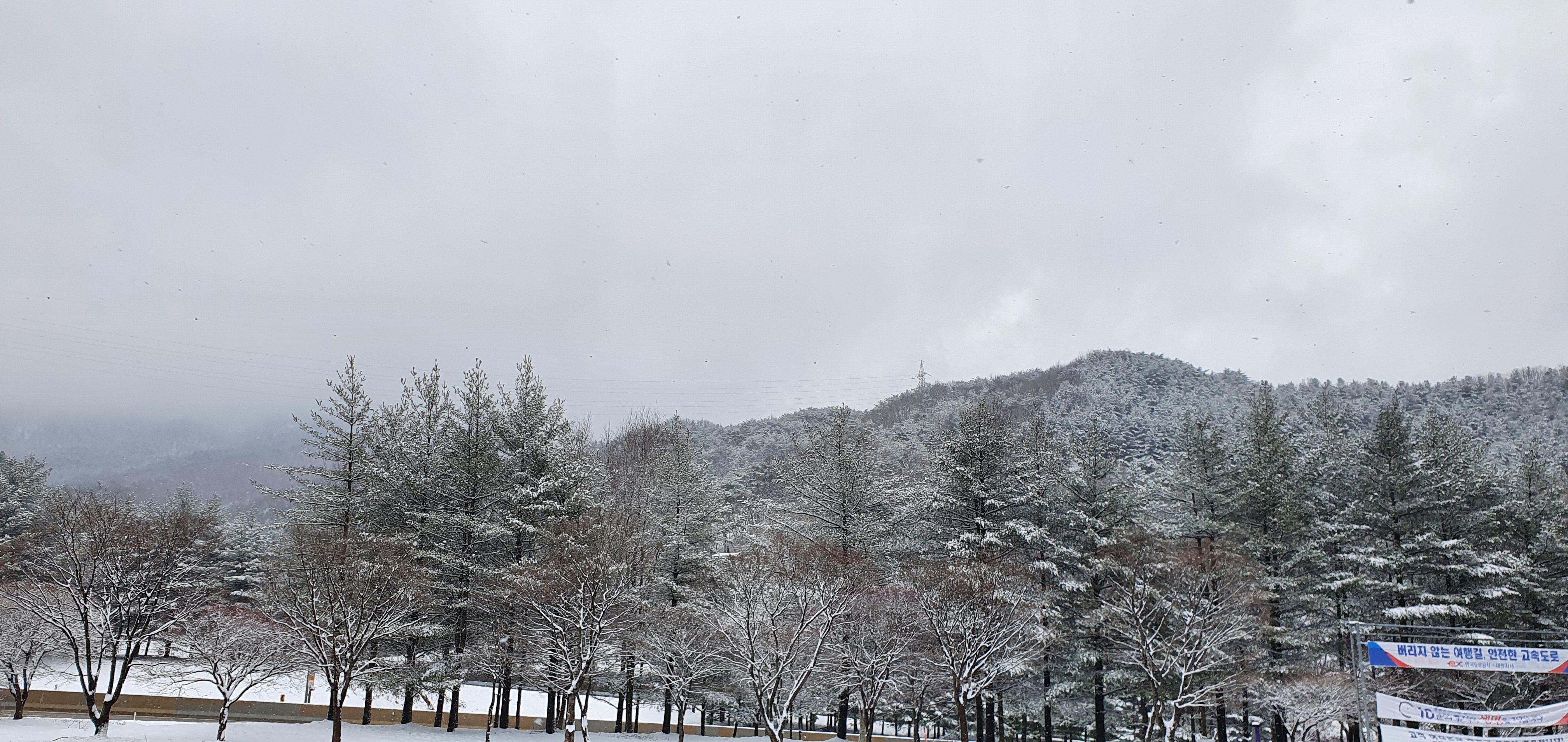 고속도로를 달려보니 경기지방도 눈이 와서 온통 하얗게 뒤덮혀있고 강원도로 갈수록 적설량이 많고