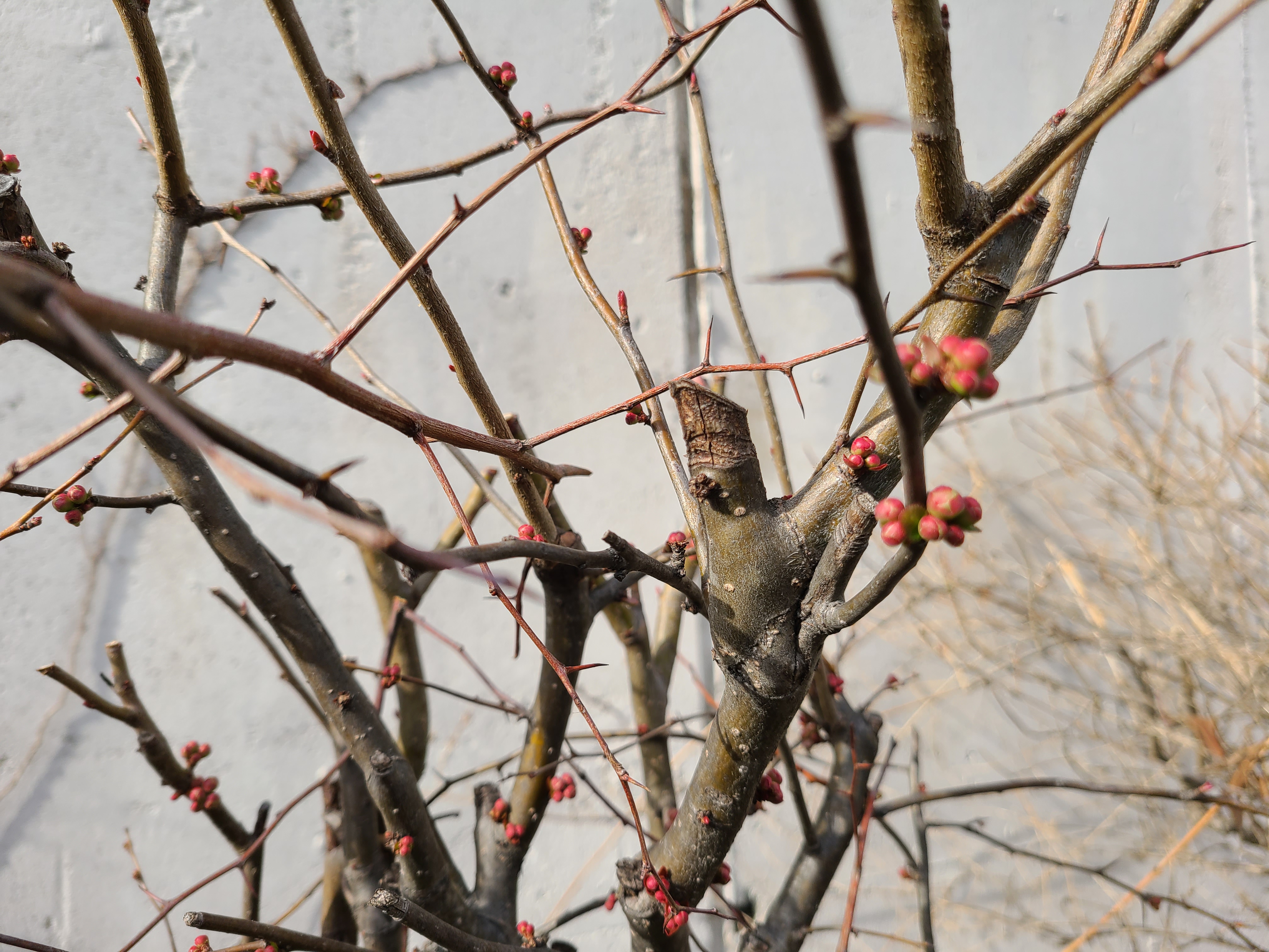 매화나무 가지에는 꽃망울이 맺혀 하루이틀 사이면 꽃이 피어날 것 같다.