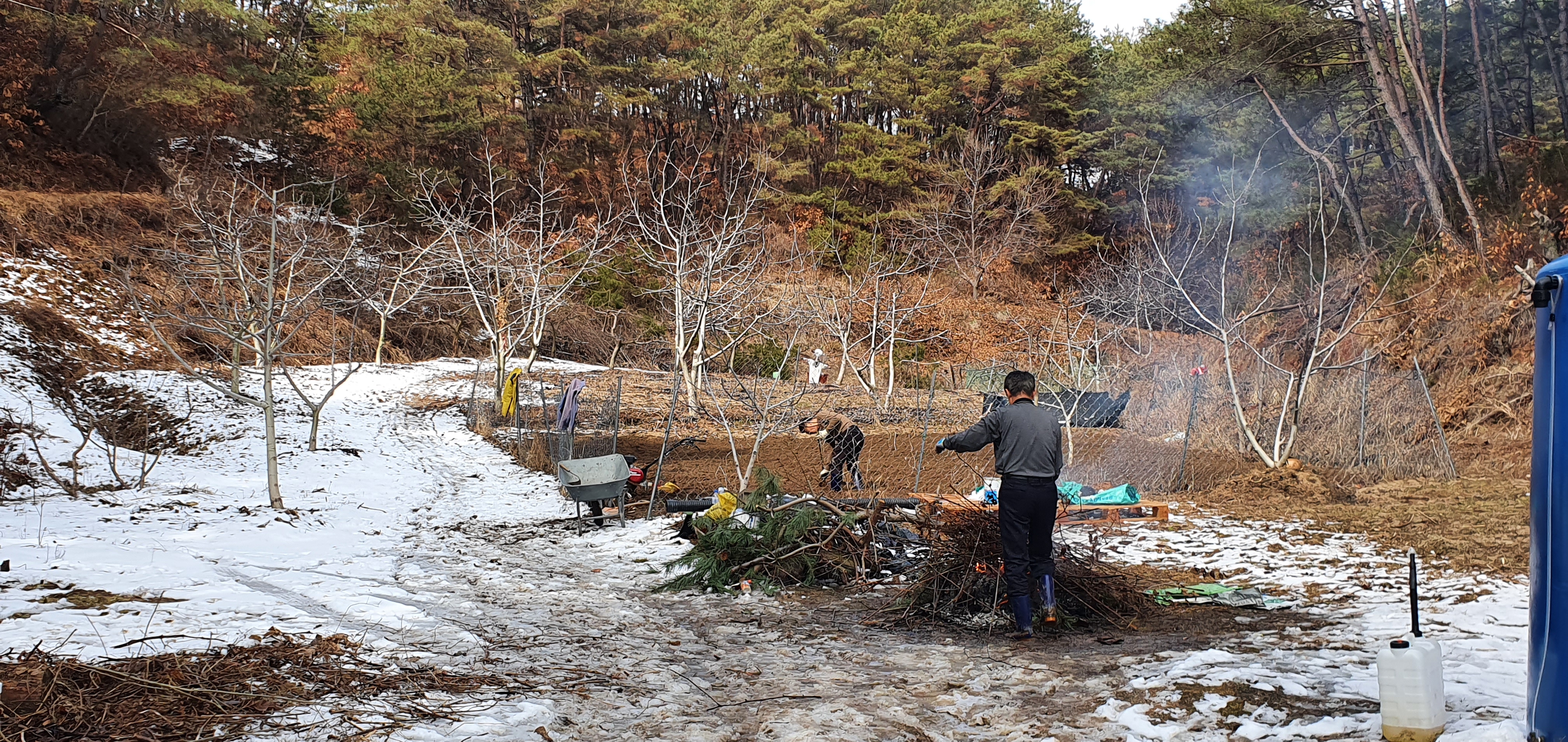 그리고 주변의 쓰레기와 폐목들을 태운다.