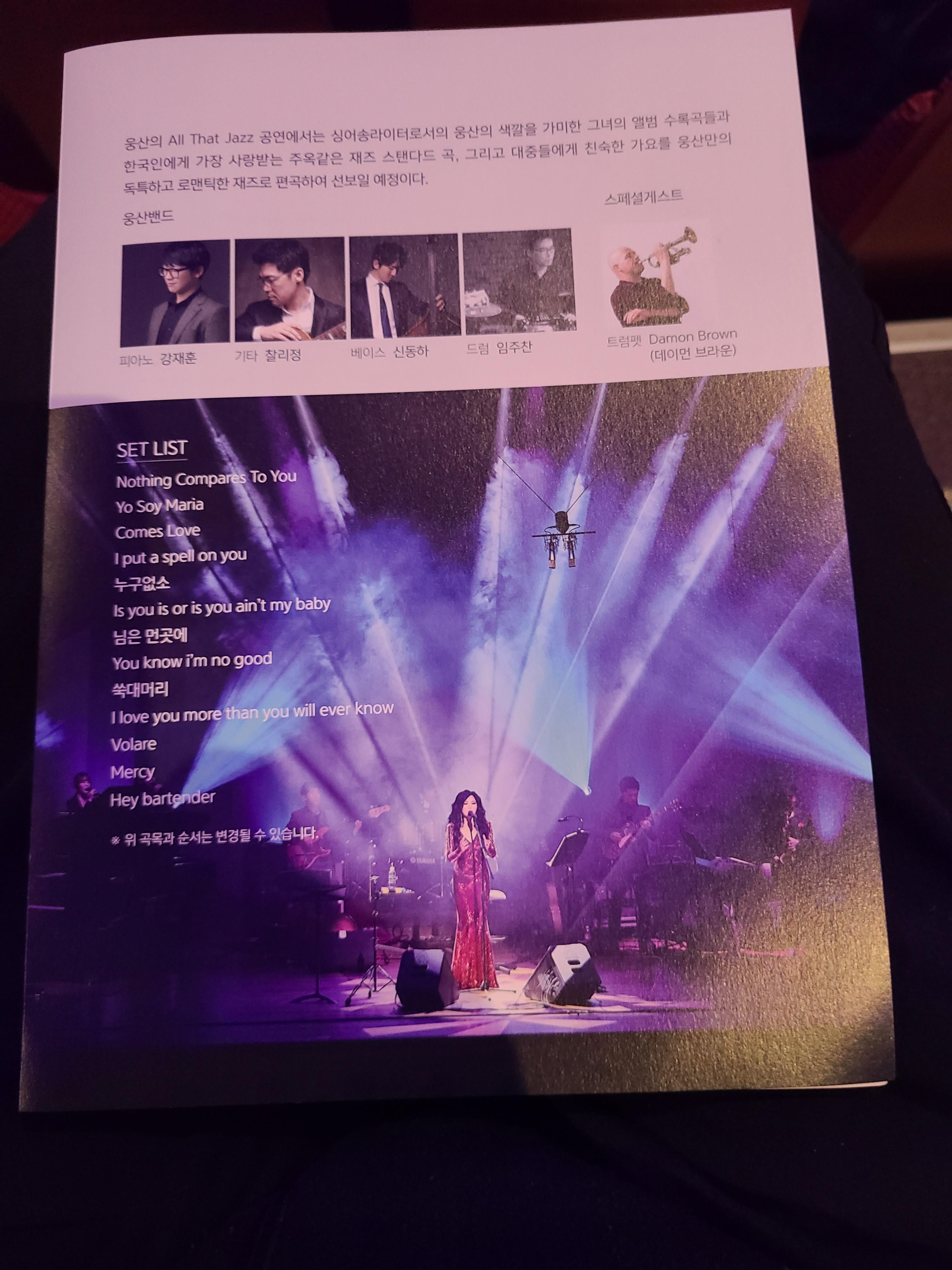 익숙치않는 재즈지만 매력적인 중저음과 깊이있는 울림으로 마음을 울리는 공연이었다.