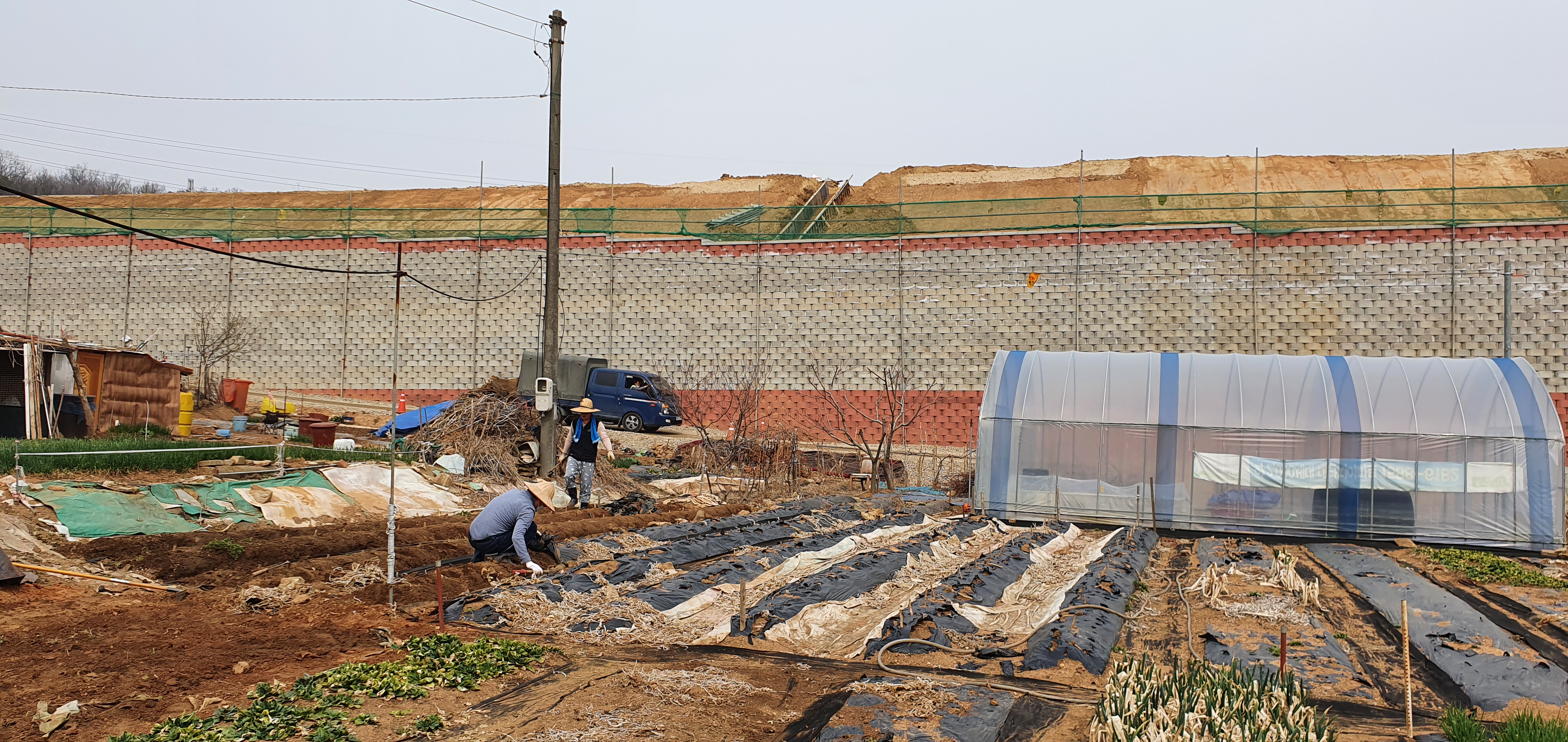 그리고는 구덩이를 메우고 작년농사로 덮어놓은 비닐을 걷는다.