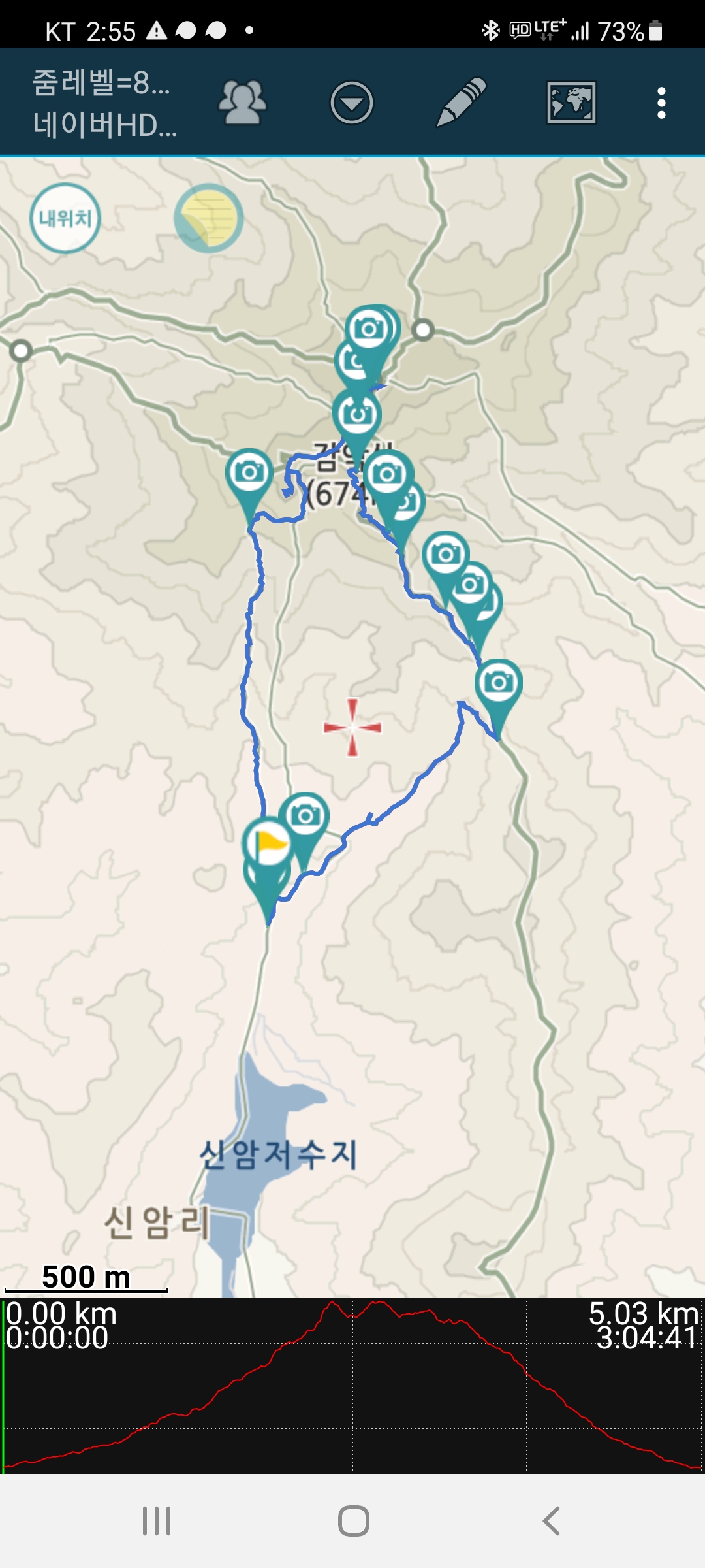 당연하지만, 공용주차장을 입력하면 항상 신암저수지를 들머리로 안내한다.