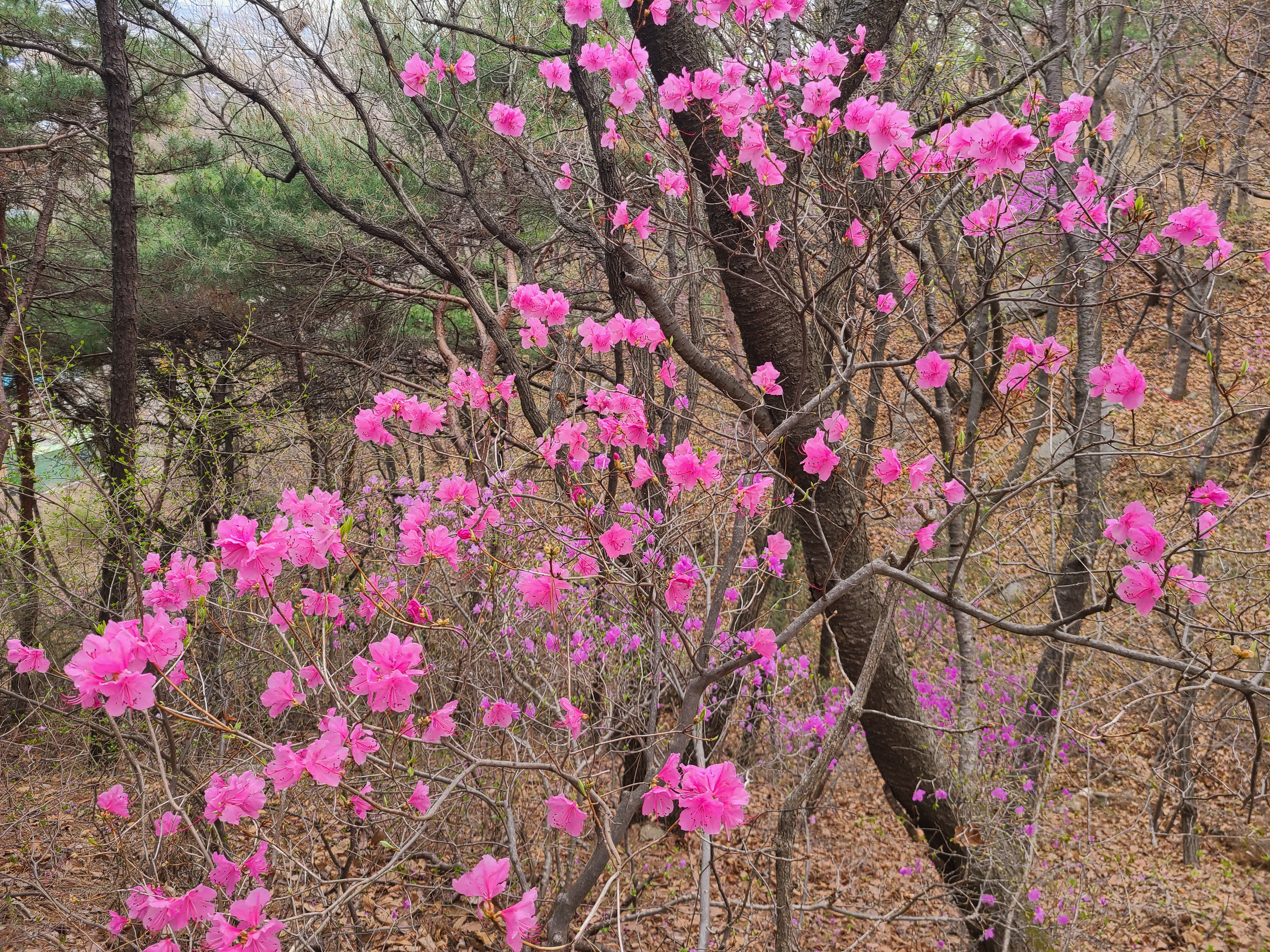 원미산처럼 군락을 이루지는 않았지만 이곳 저곳에 산재되어 피어있는 진달래가 보기에도 좋다.