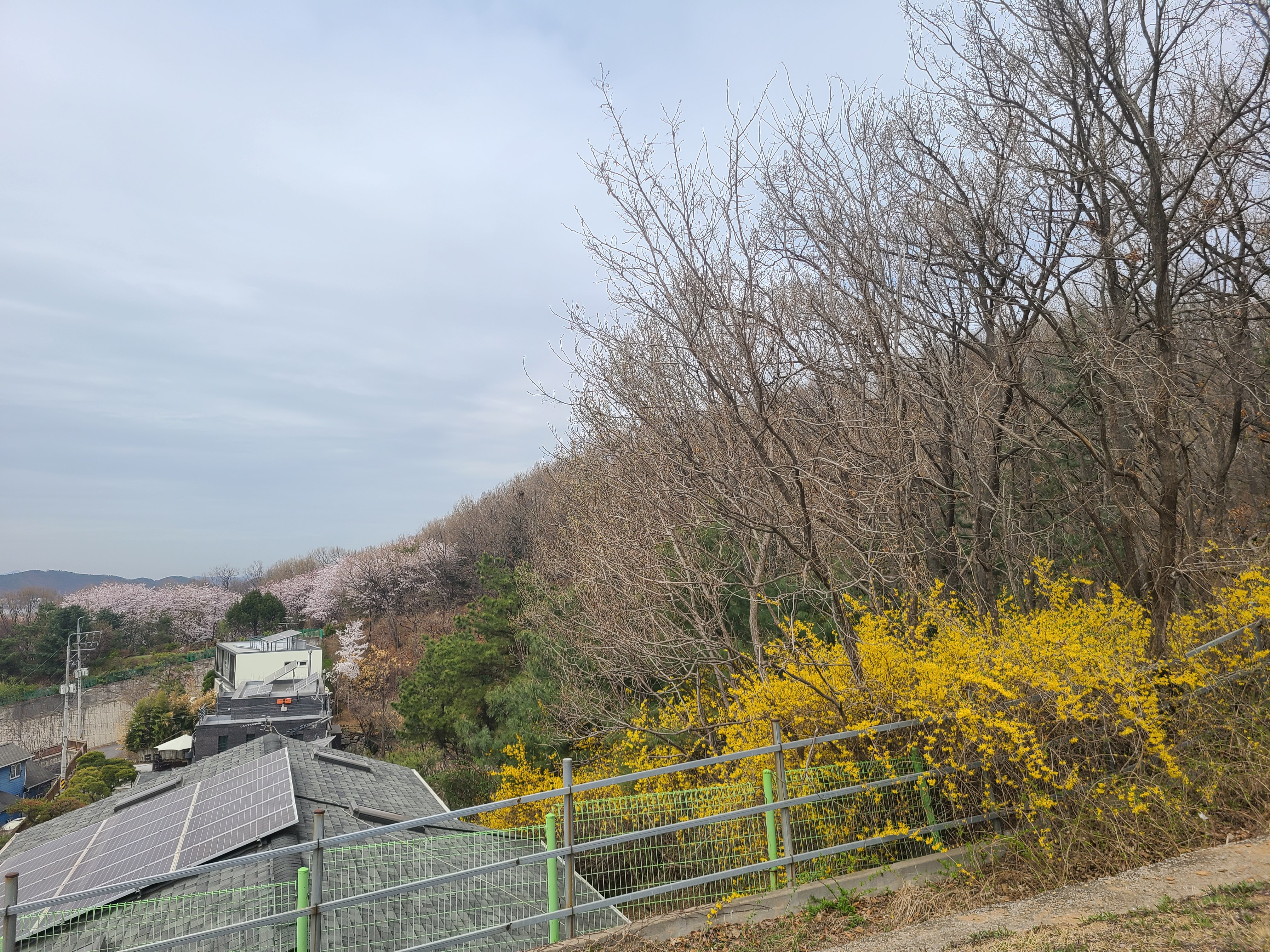 원미산처럼 군락을 이루지는 않았지만 이곳 저곳에 산재되어 피어있는 진달래가 보기에도 좋다.