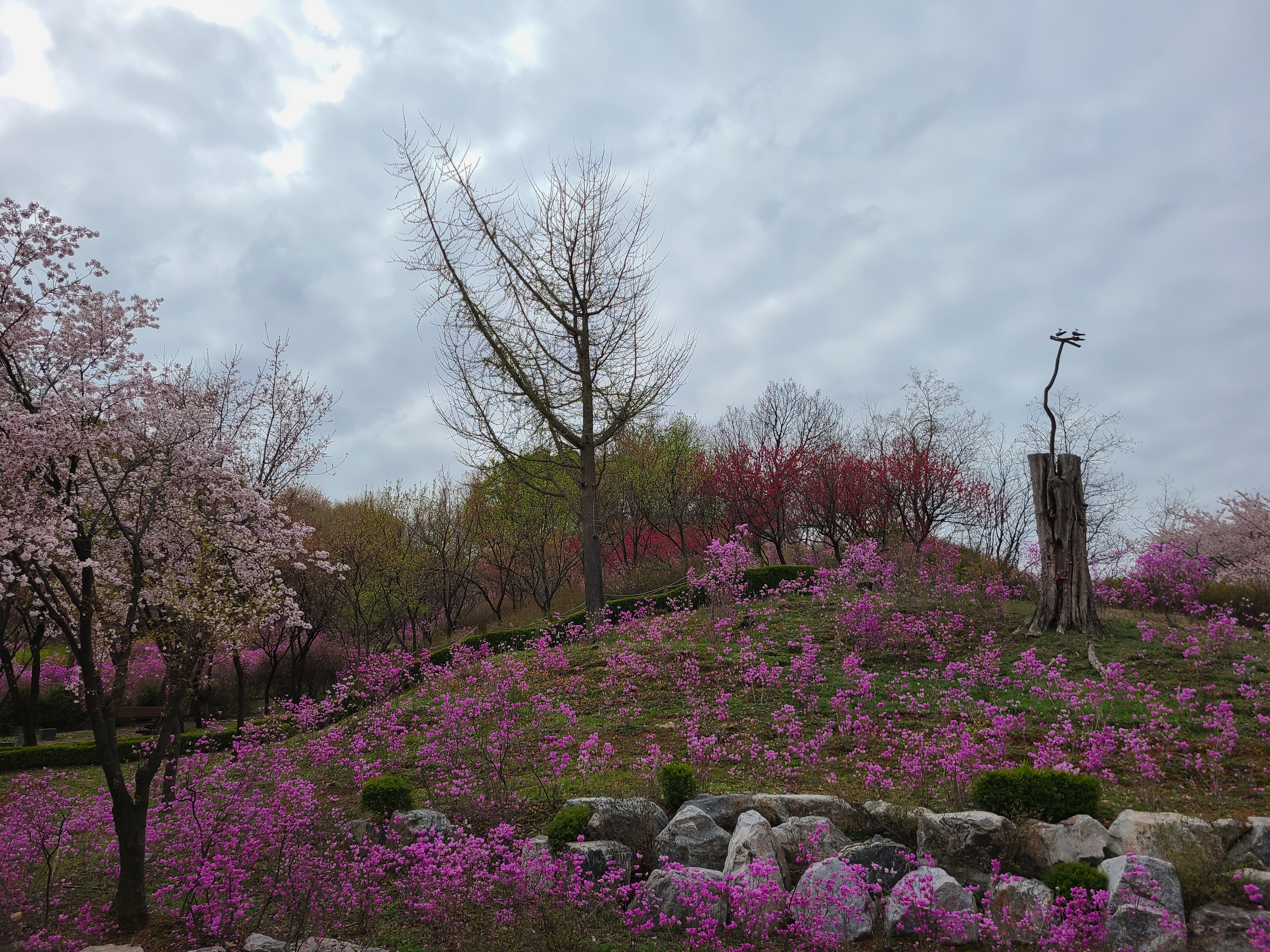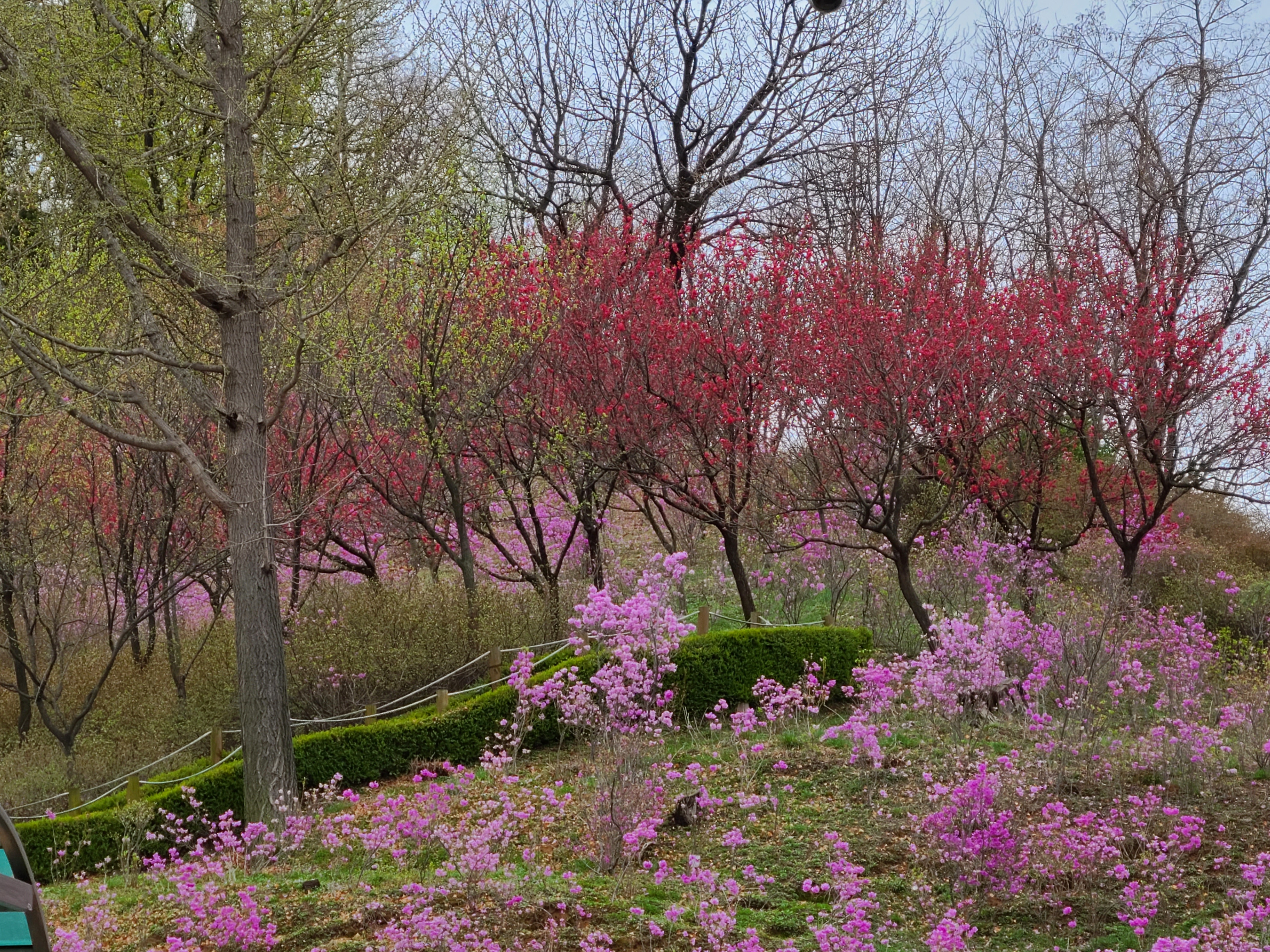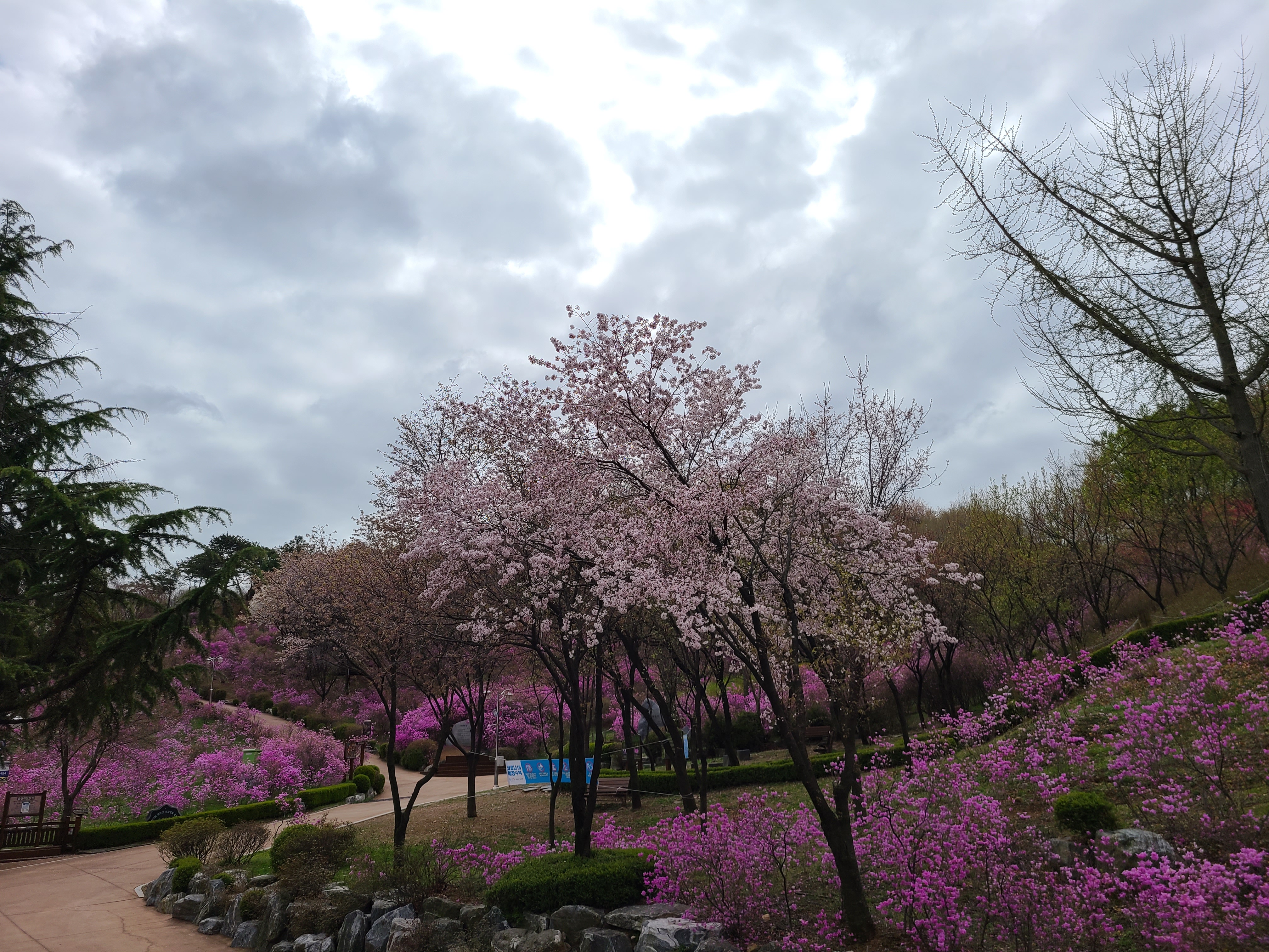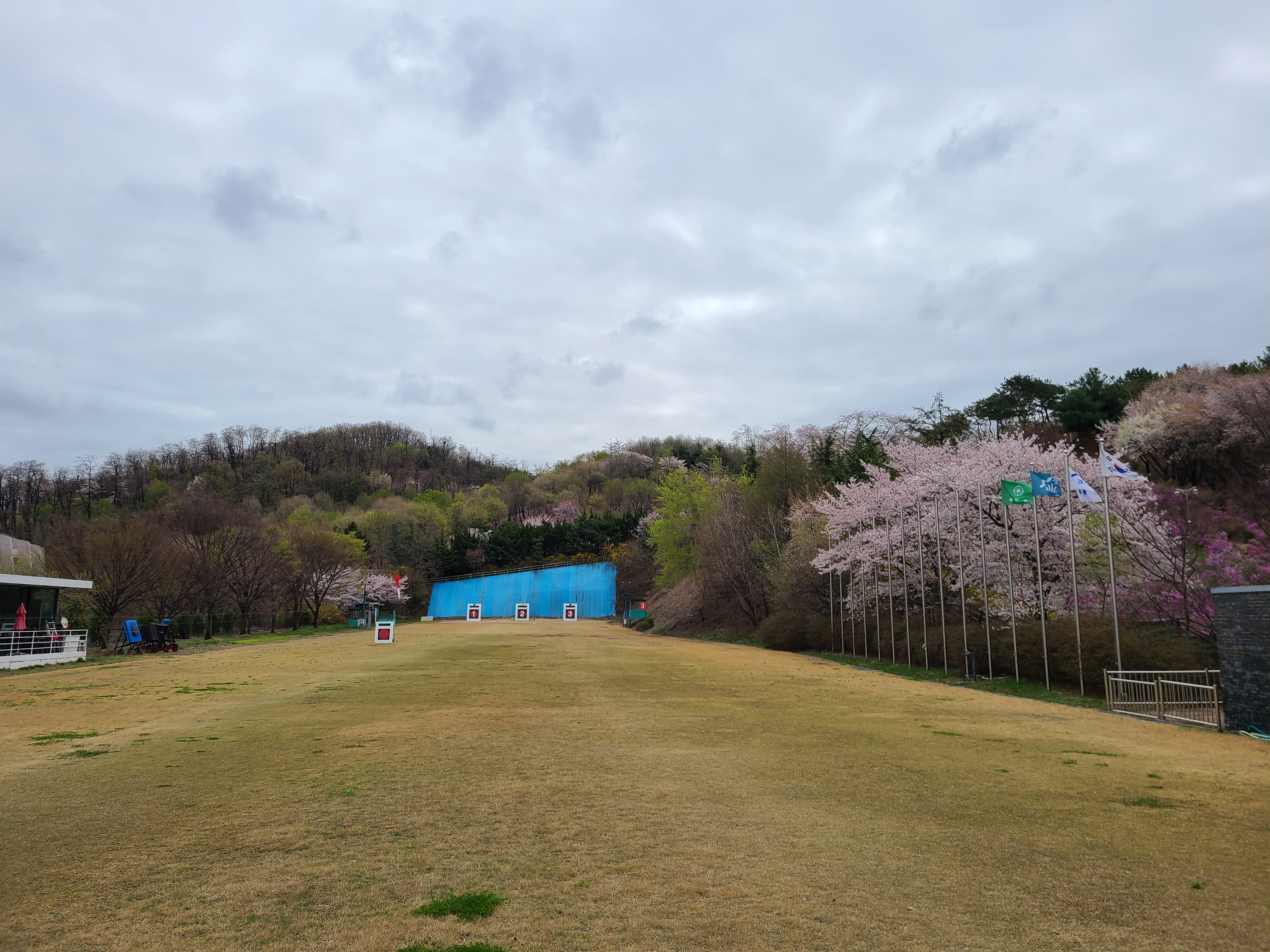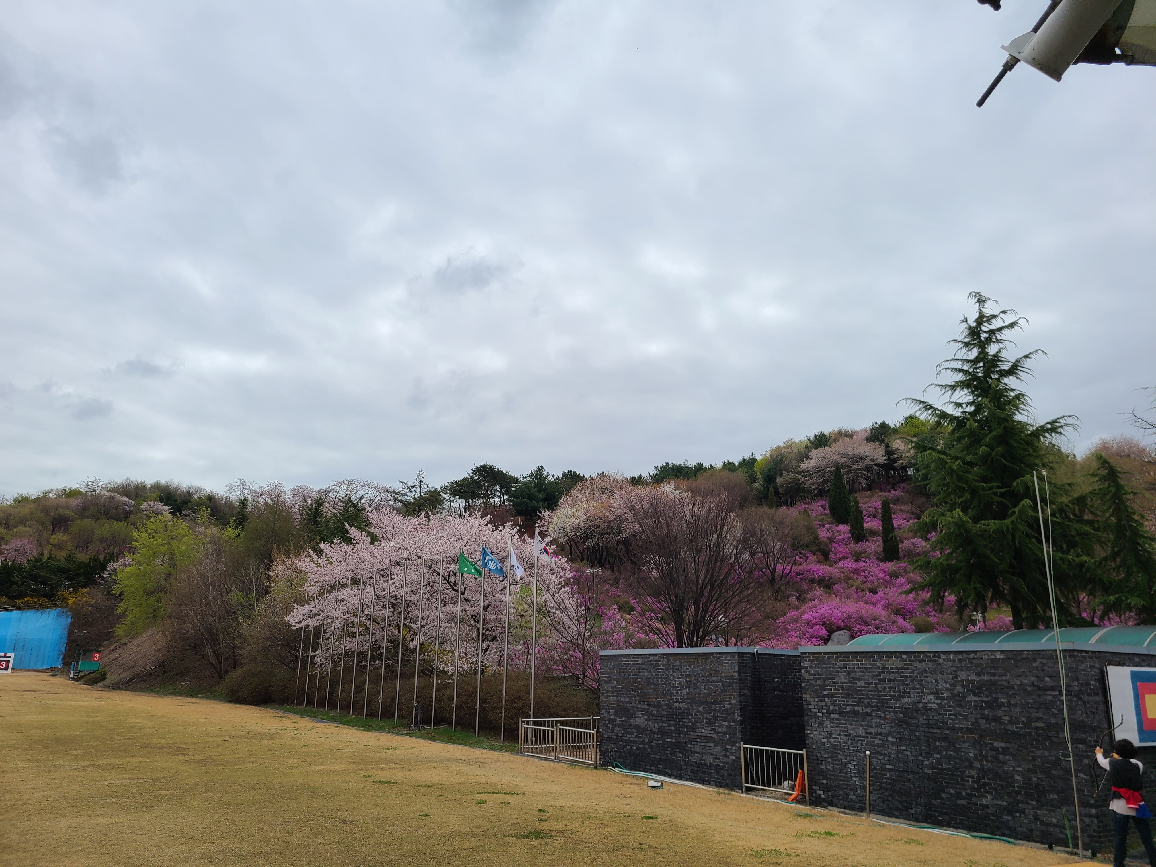 과녁이 있는 곳까지 잔디가 잘 가꾸어지고 주변이 진달래와 개나리 벚꽃등으로 어울려 피어있으니