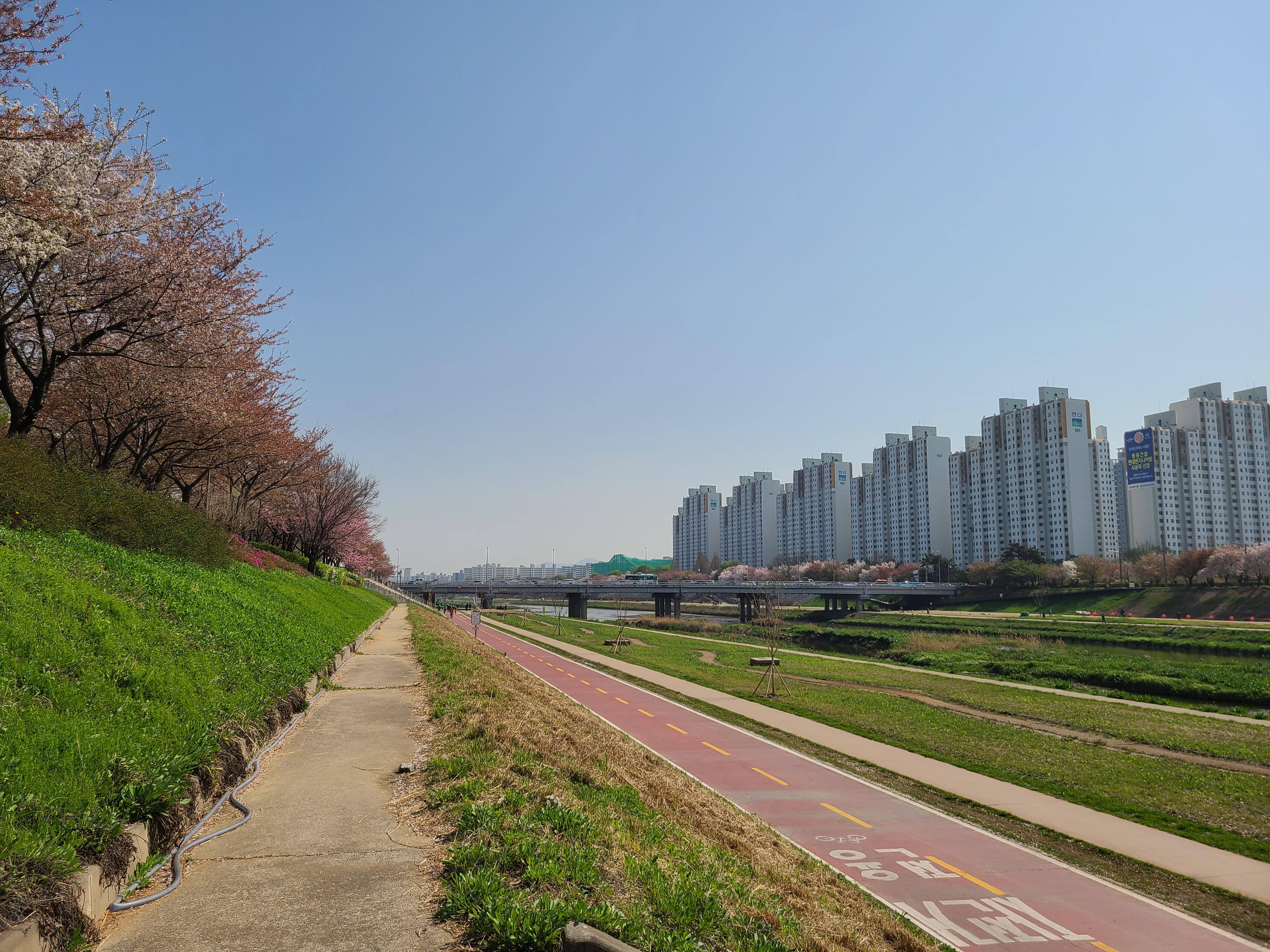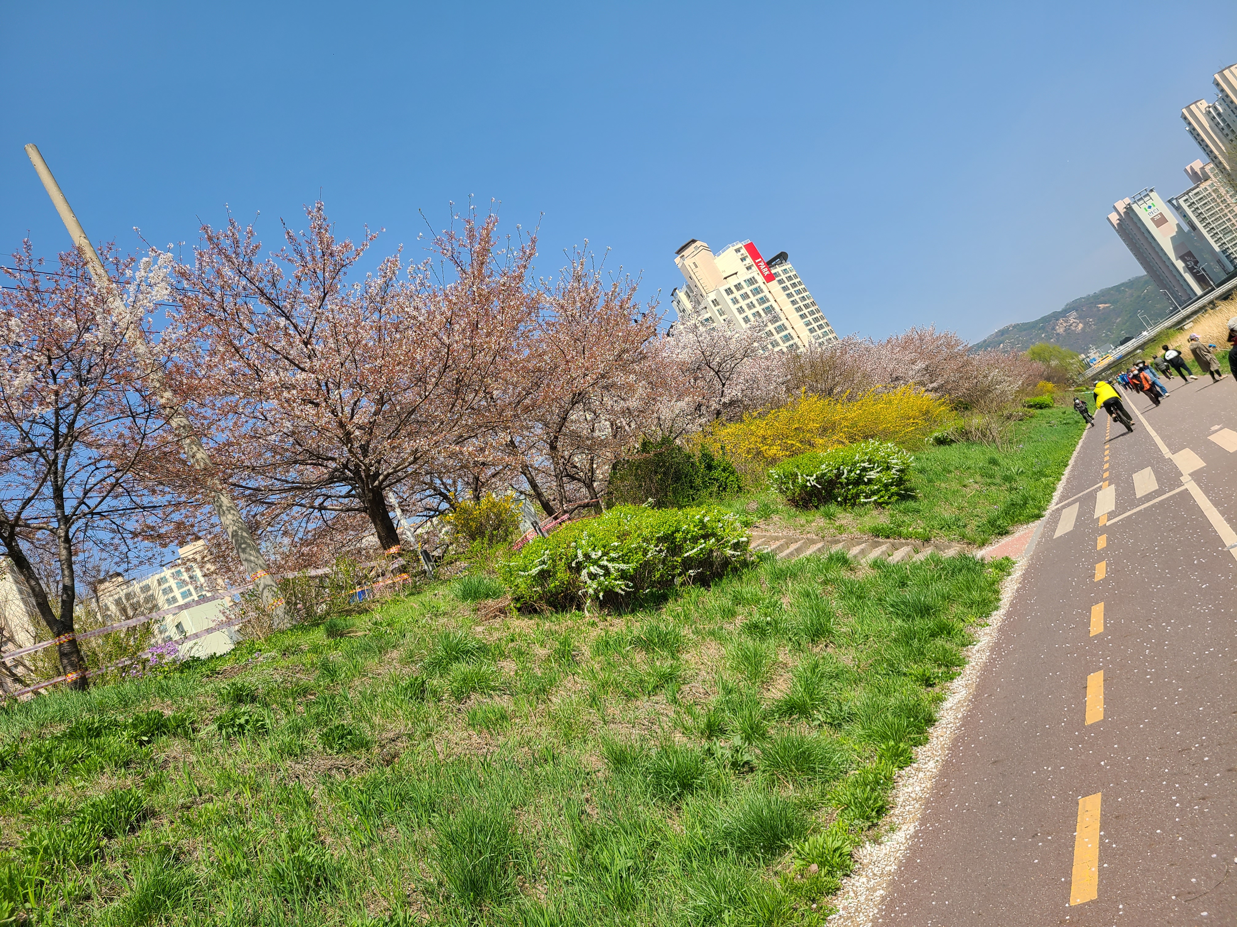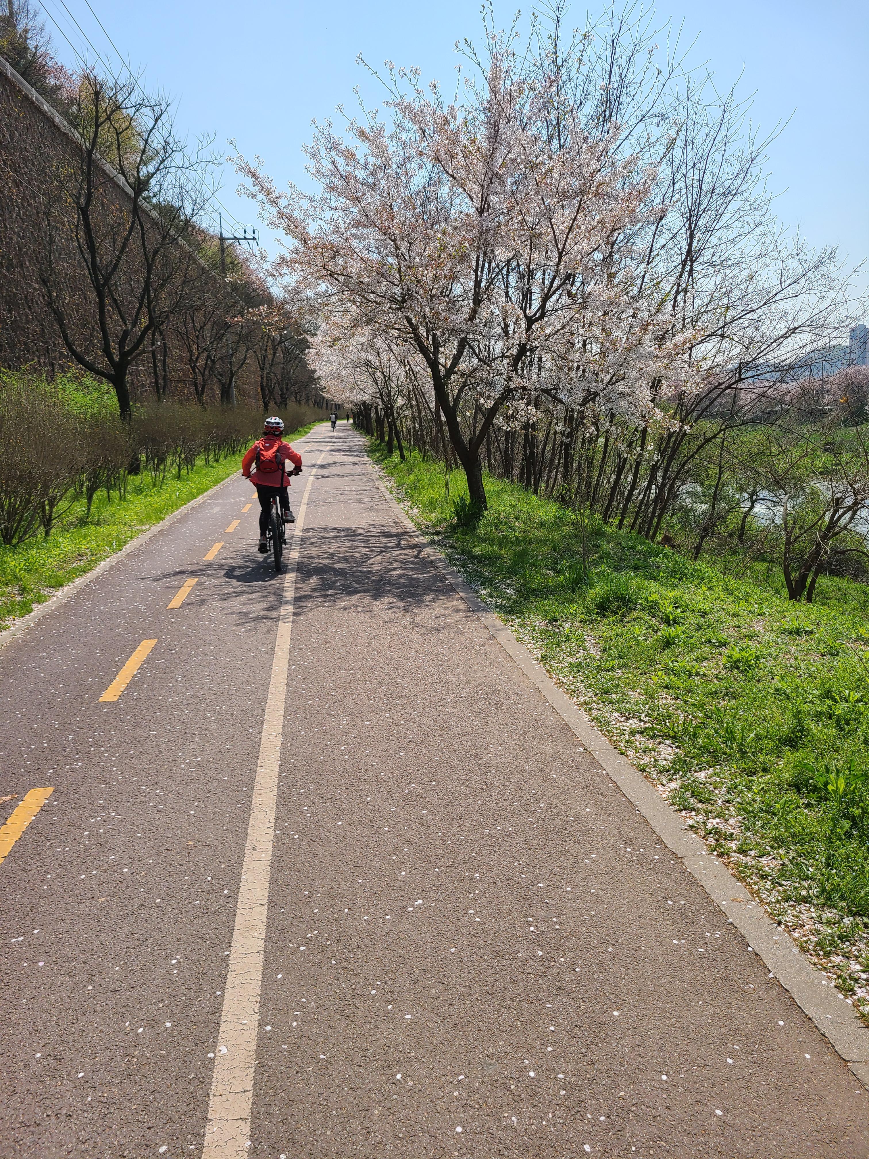 이곳의 벚꽃은 아직 잎이 나진않고 뚝방을 화려하게 장식하며 장관을 이루고있다.
