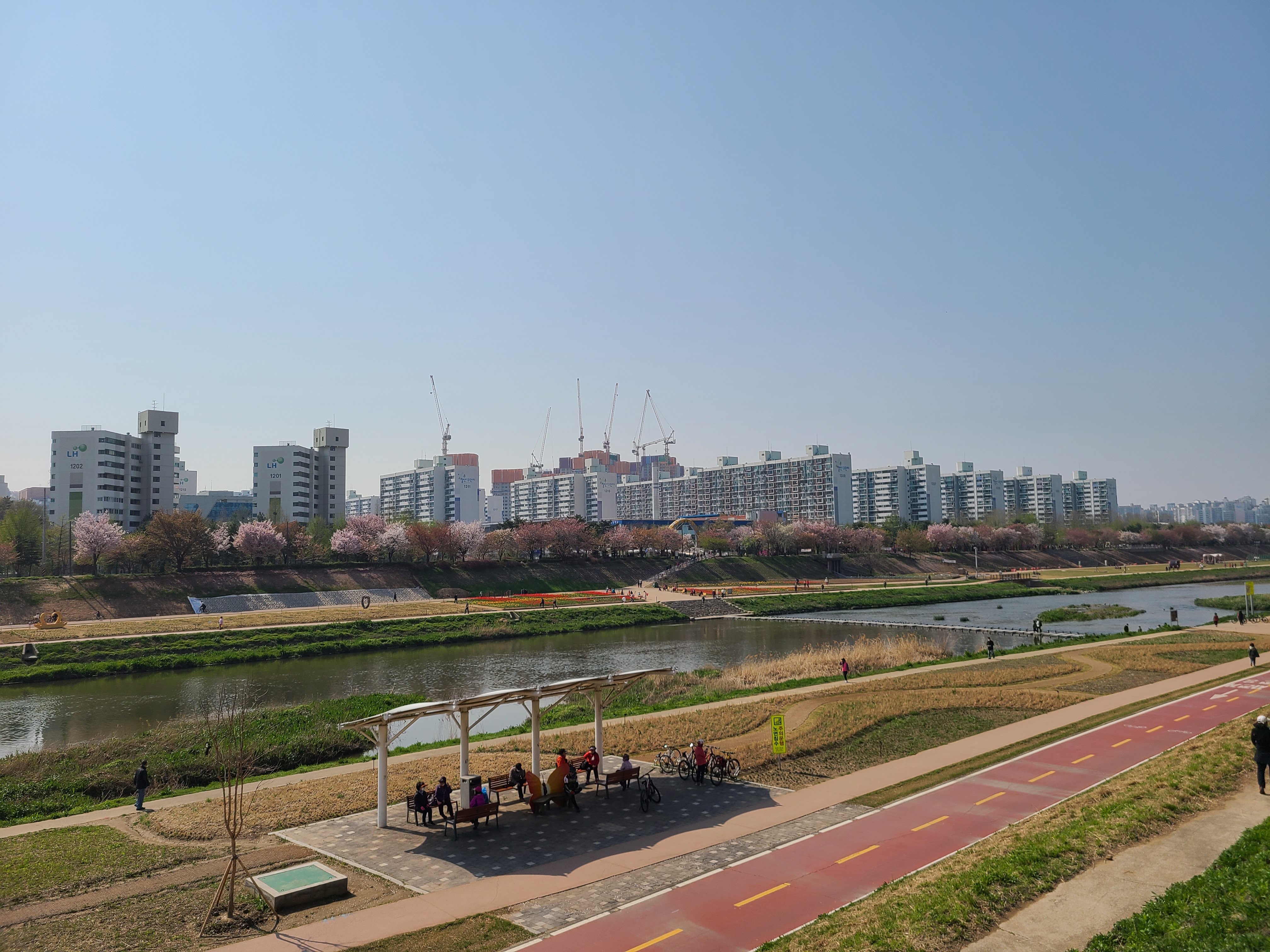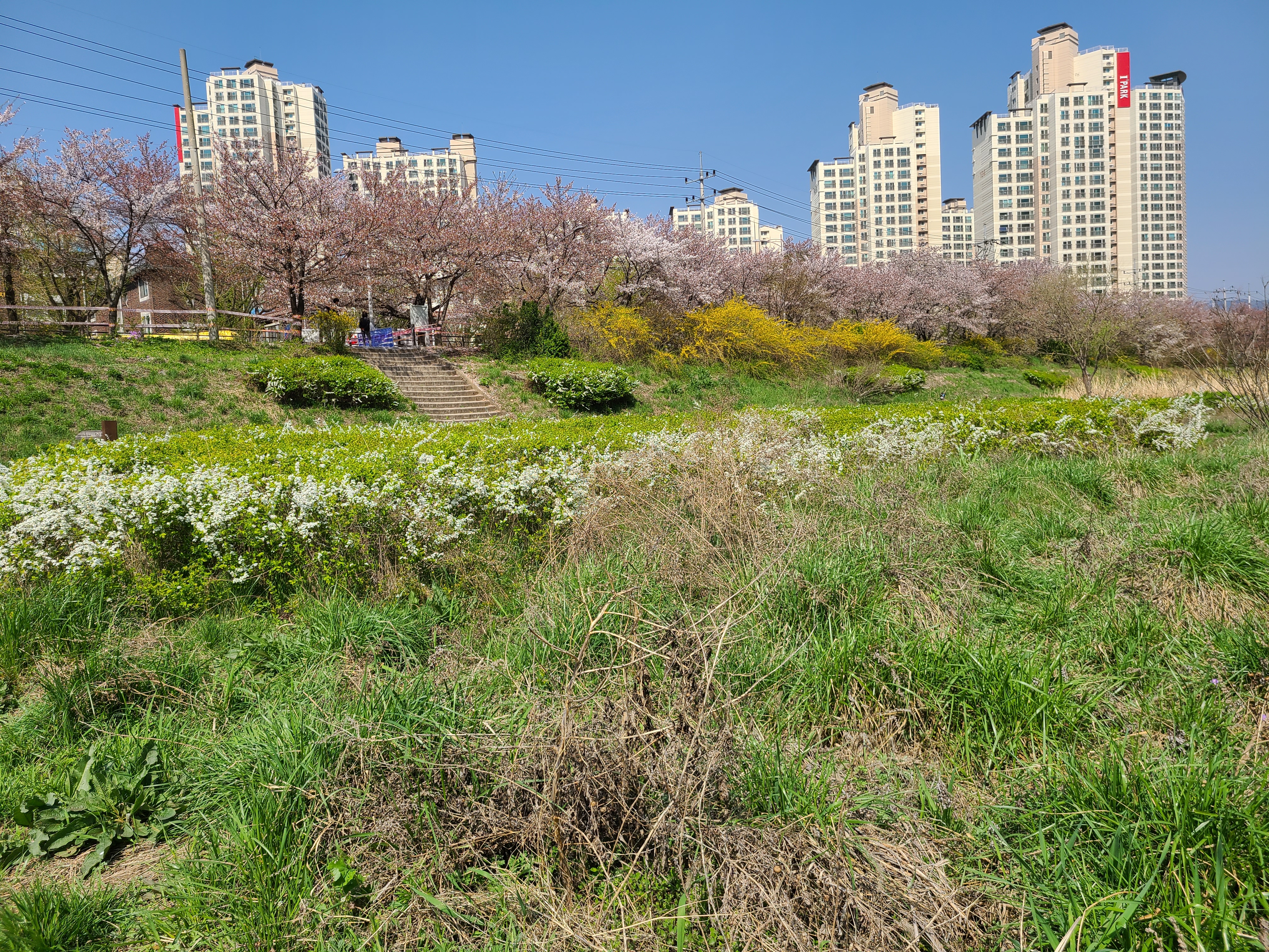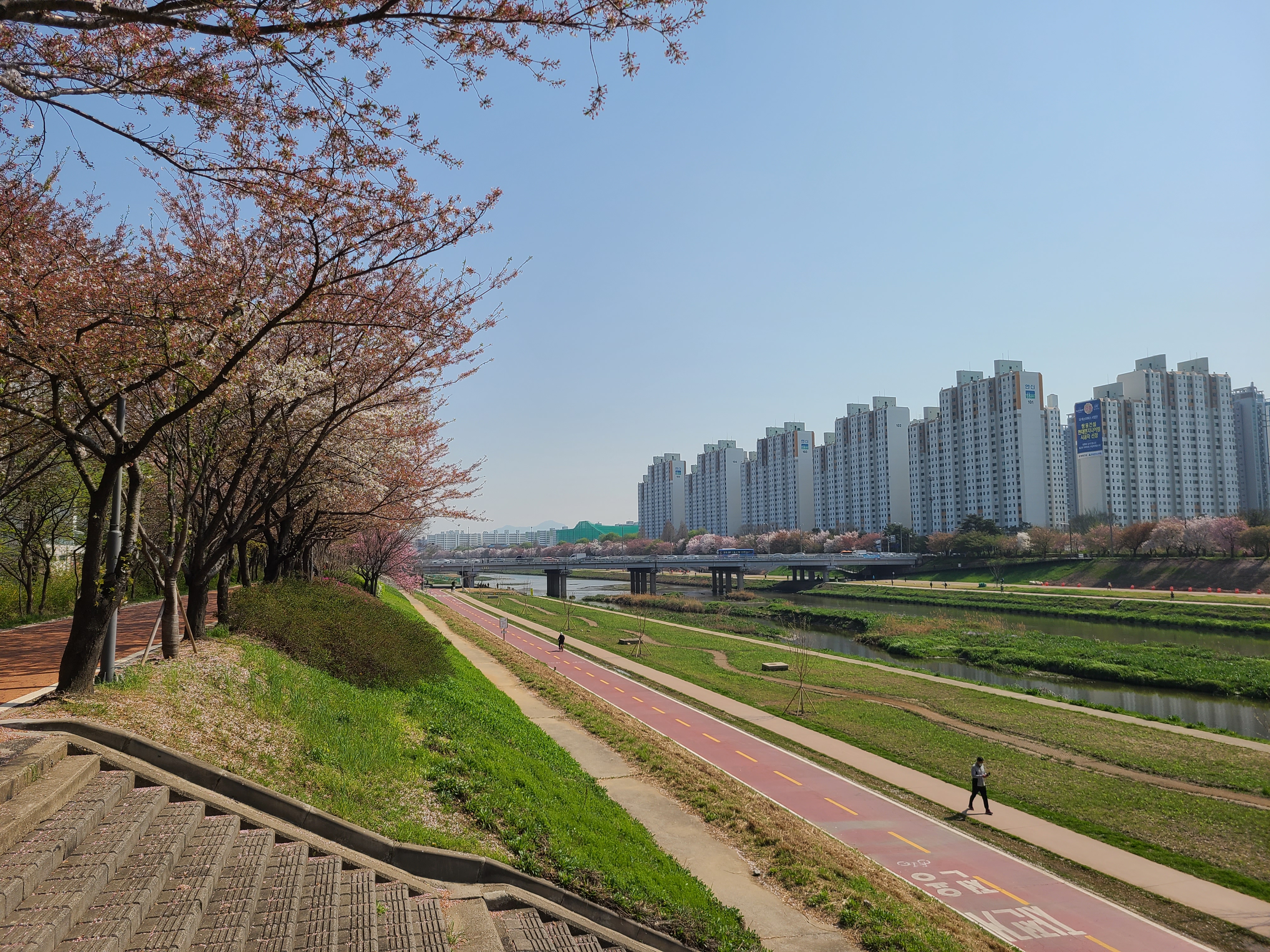 이곳의 벚꽃은 아직 잎이 나진않고 뚝방을 화려하게 장식하며 장관을 이루고있다.