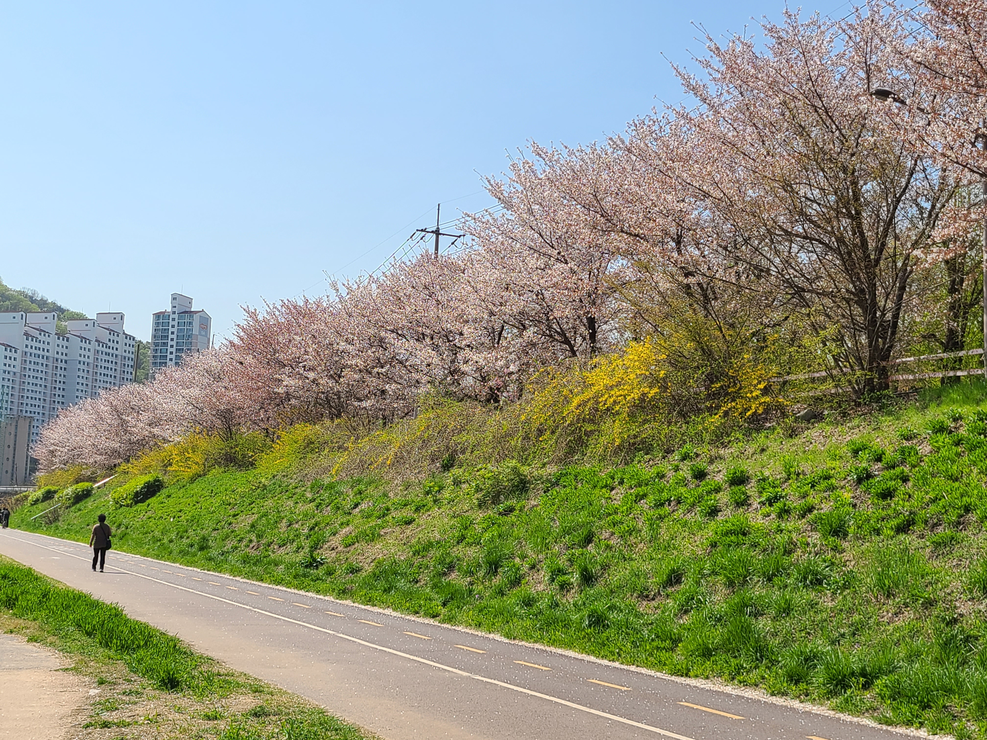 이곳의 벚꽃은 아직 잎이 나진않고 뚝방을 화려하게 장식하며 장관을 이루고있다.