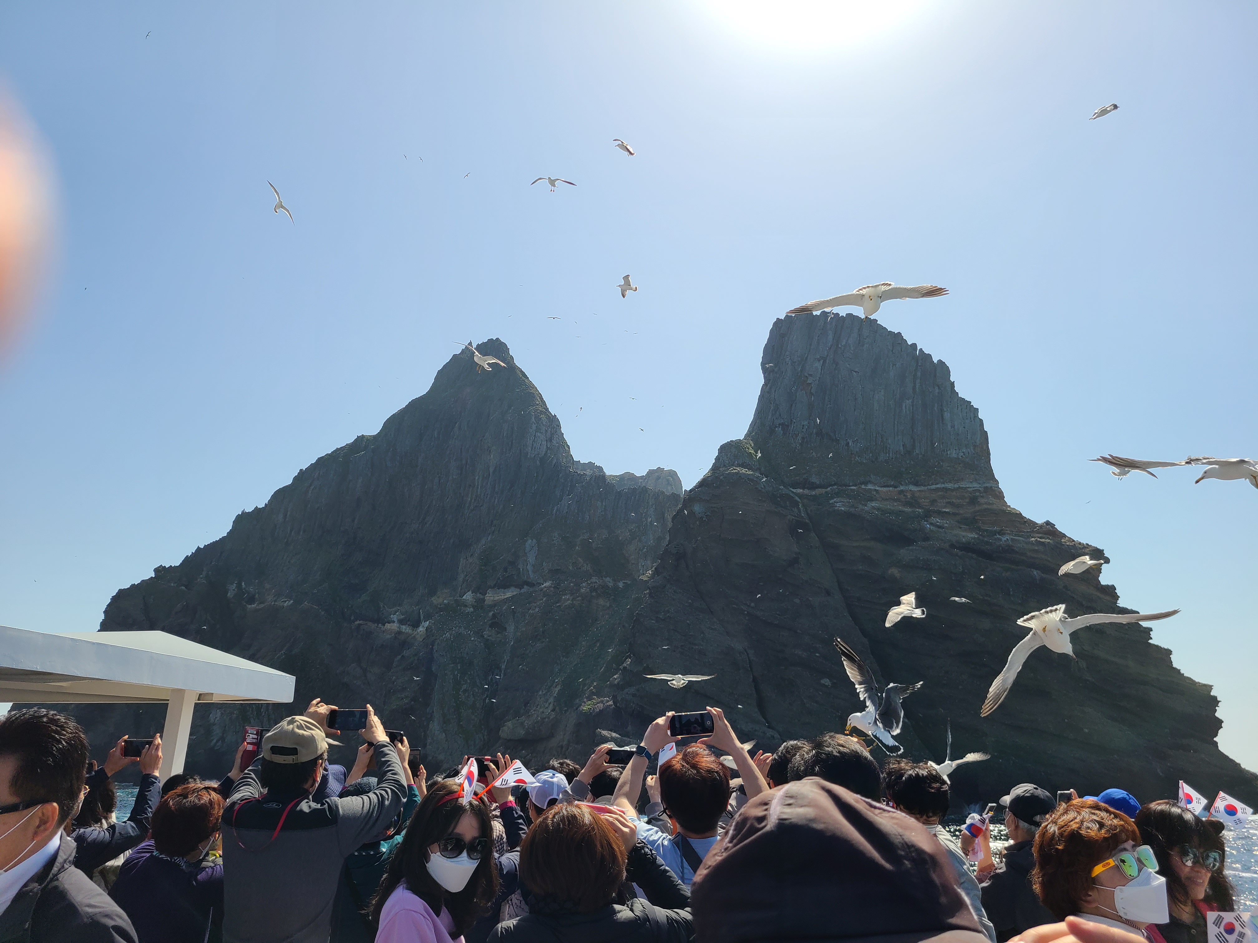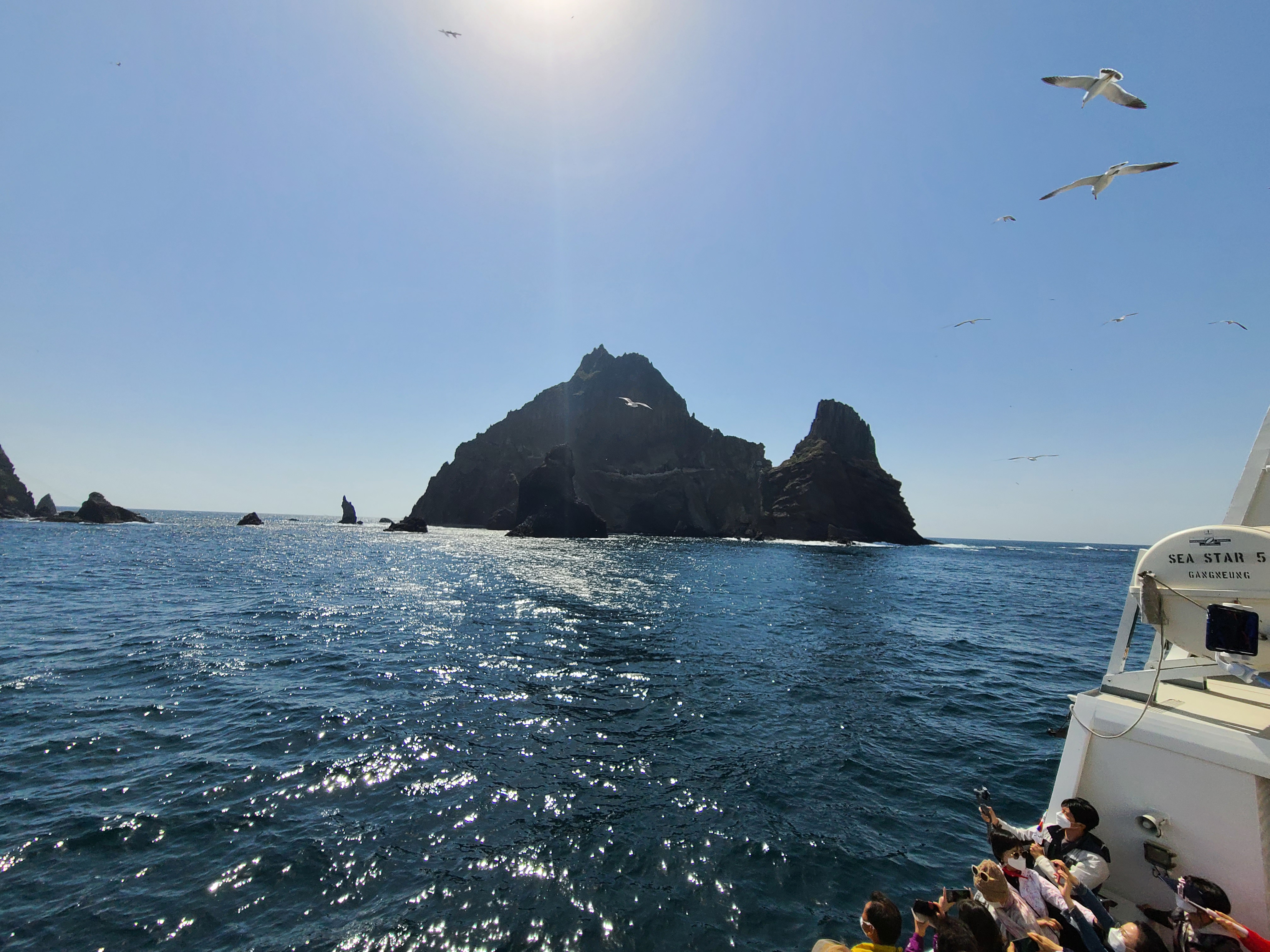 그러나 파고가높아 접안이힘든배는 독도를 천천히 한바퀴 선회관광하는것으로 대신한다.