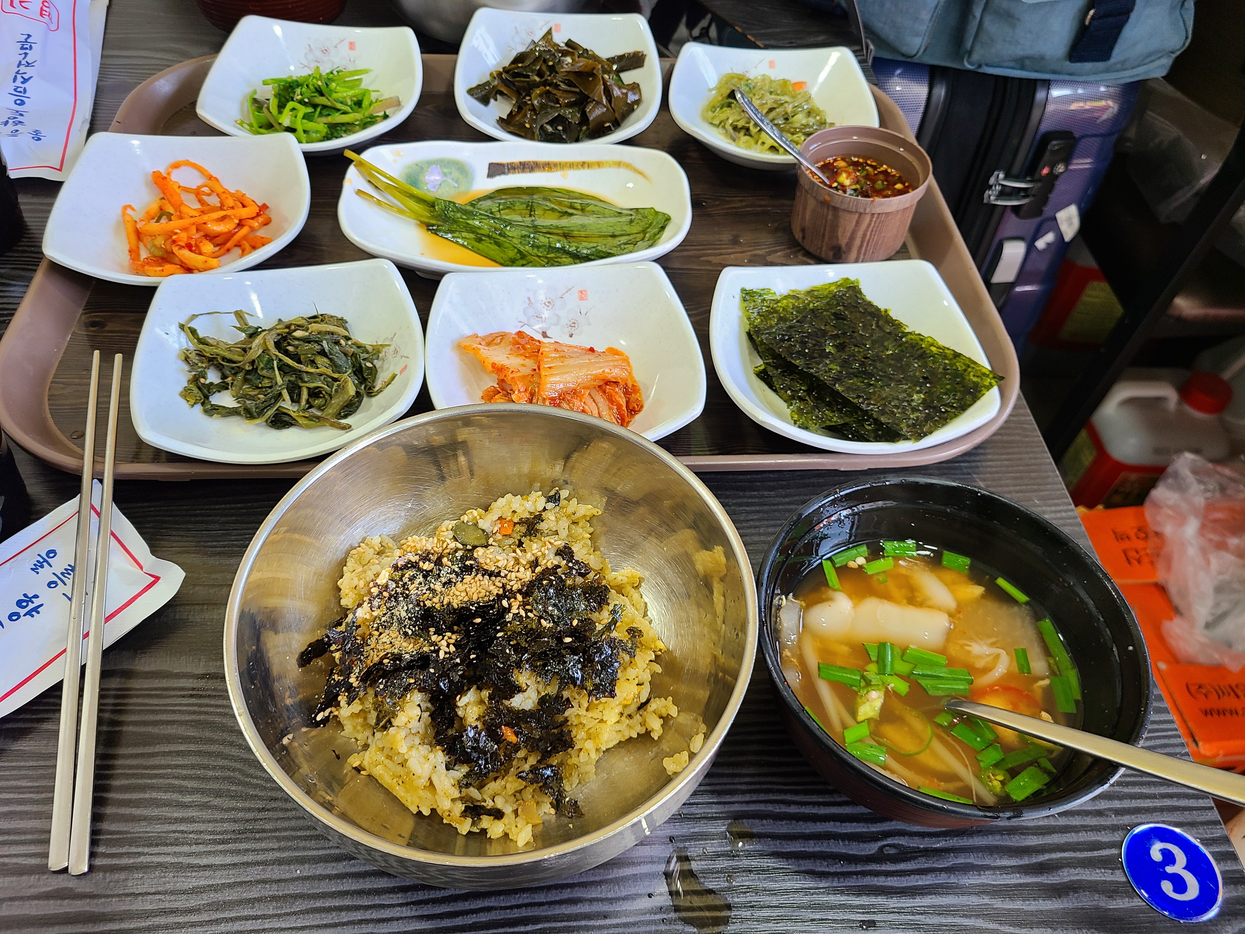 인근 명가식당으로 무거운 짐을이동하여 따게비밥 한그릇을 해치우고 다시 터미날로이동하여 독도행배에오른다.