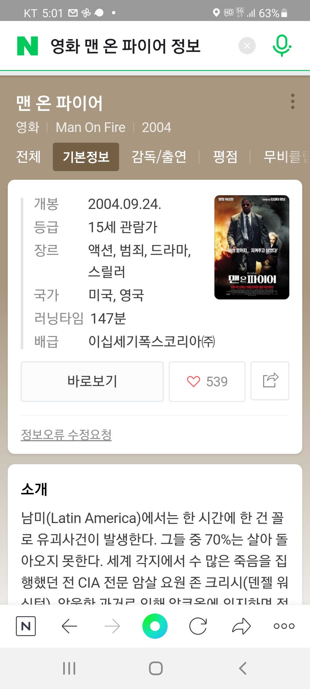 울릉여행중 트레킹을 마치고 숙소에서 휴식을 취하면서 본 영화.