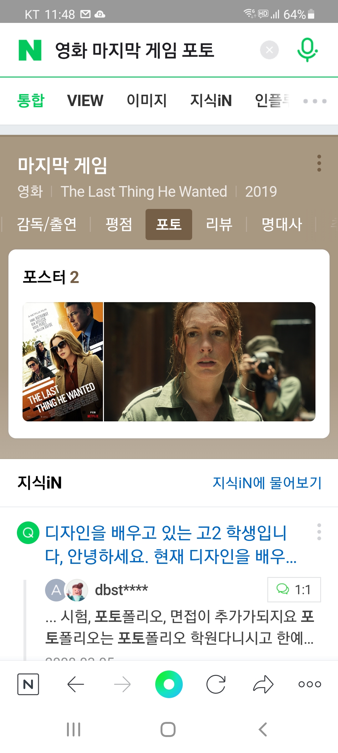 좋아하는 배우 앤 해서웨이주연의 마지막 게임을 보기로 하고 감상하는데,
