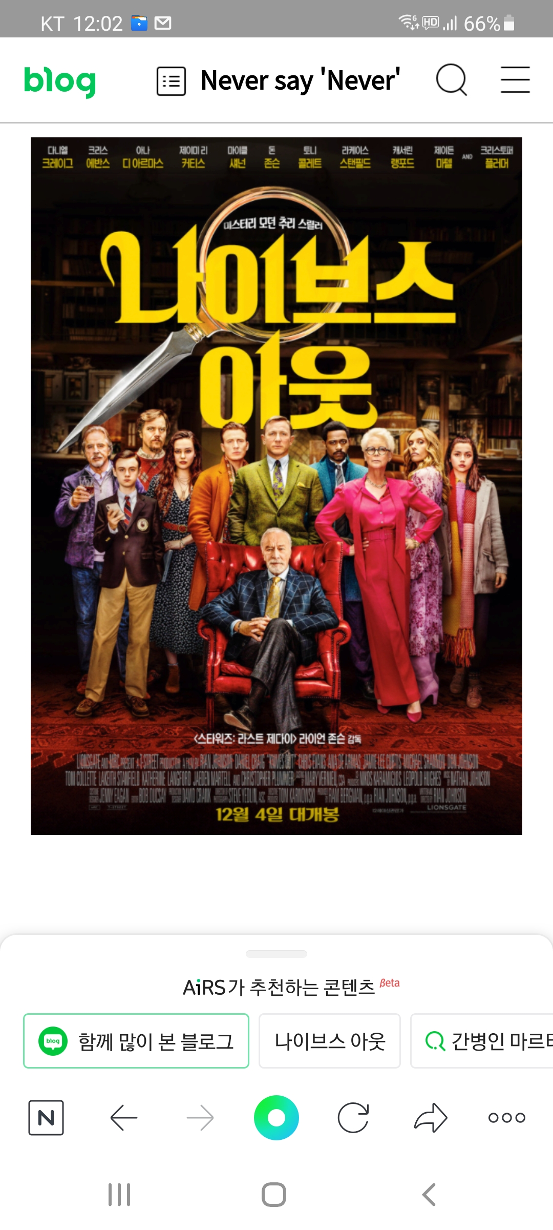 나이브스 아웃. '칼을 빼내다,칼을 휘두르다.'의 사전적 뜻이지만,'아주 위험한 상황'이라는 숙어도 있다.