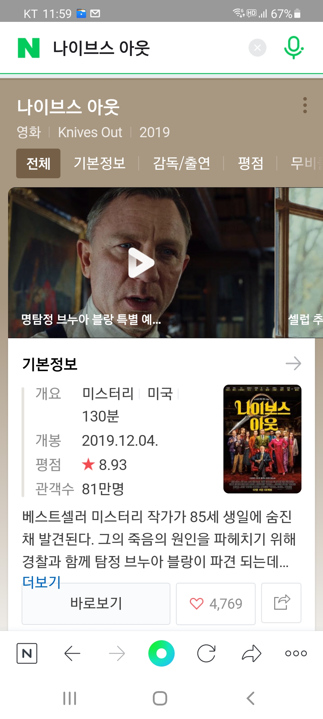 나이브스 아웃. '칼을 빼내다,칼을 휘두르다.'의 사전적 뜻이지만,'아주 위험한 상황'이라는 숙어도 있다.