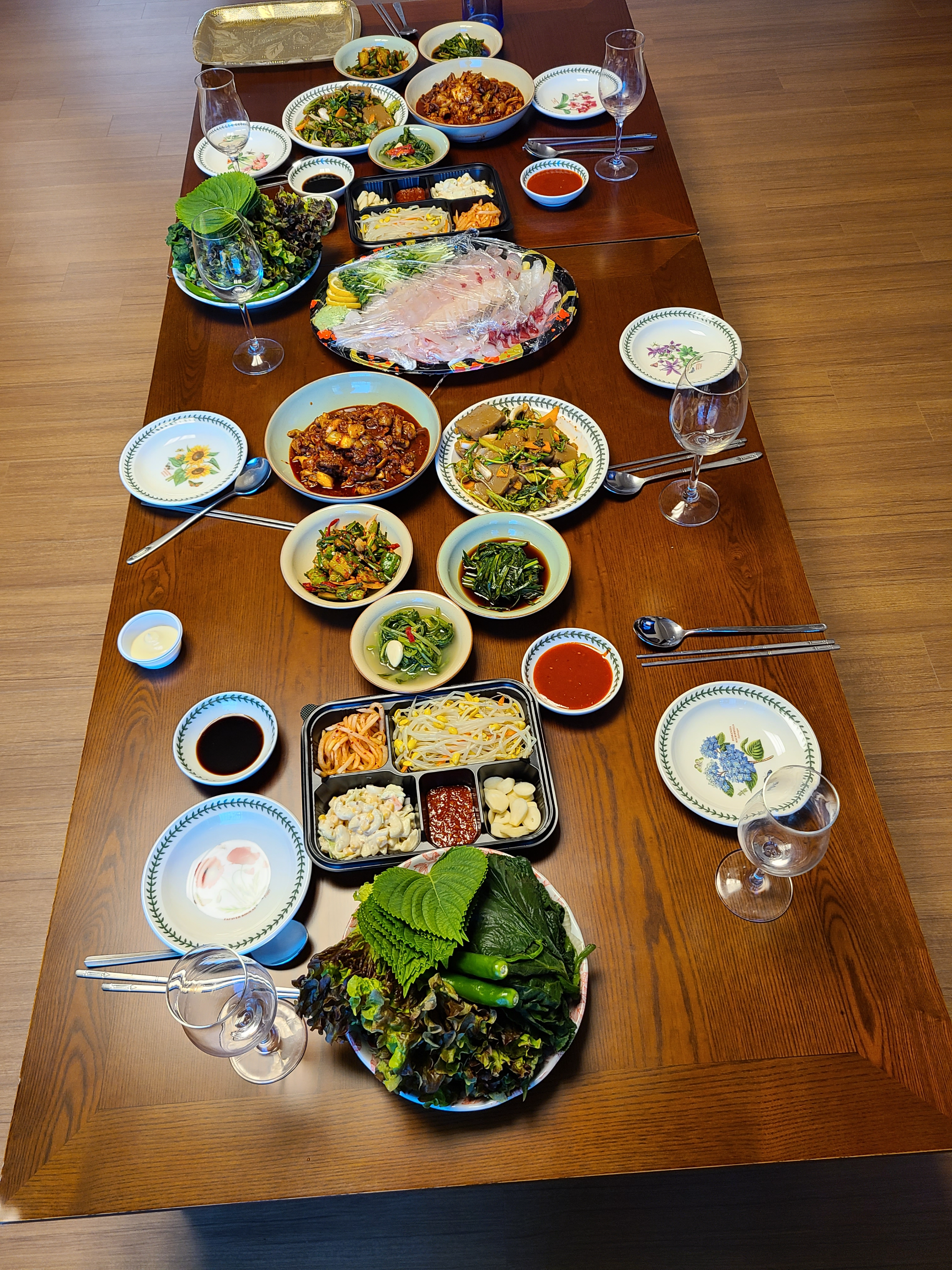 아들내외와 먼저 상을 차려 먹고 있으려니 그제서야 딸내외가 들어온다.