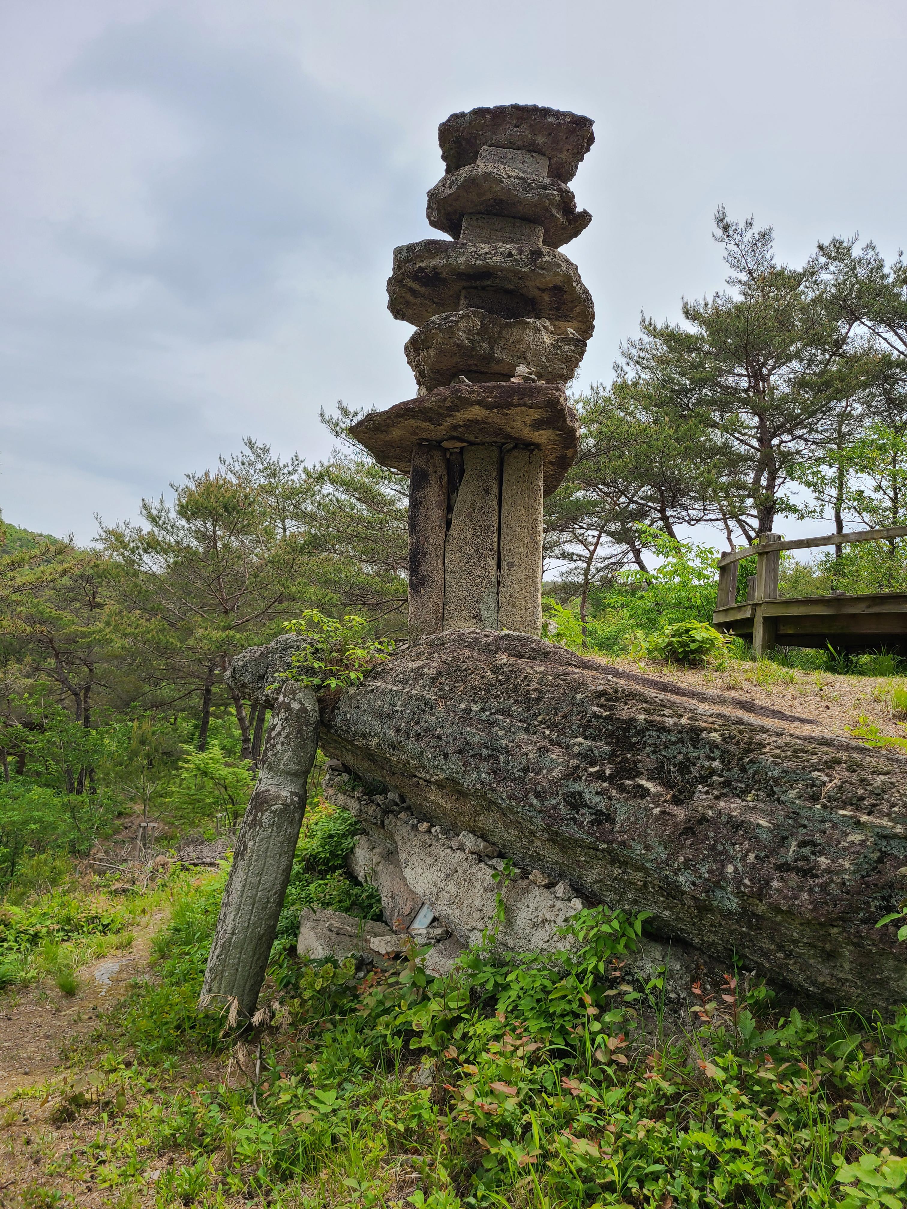 와불의 반대편 산자락에도 데크길과 더불어 탑들이 보여 와불이 있는 산자락을 내려와 건너편으로 올라가는데 데크가