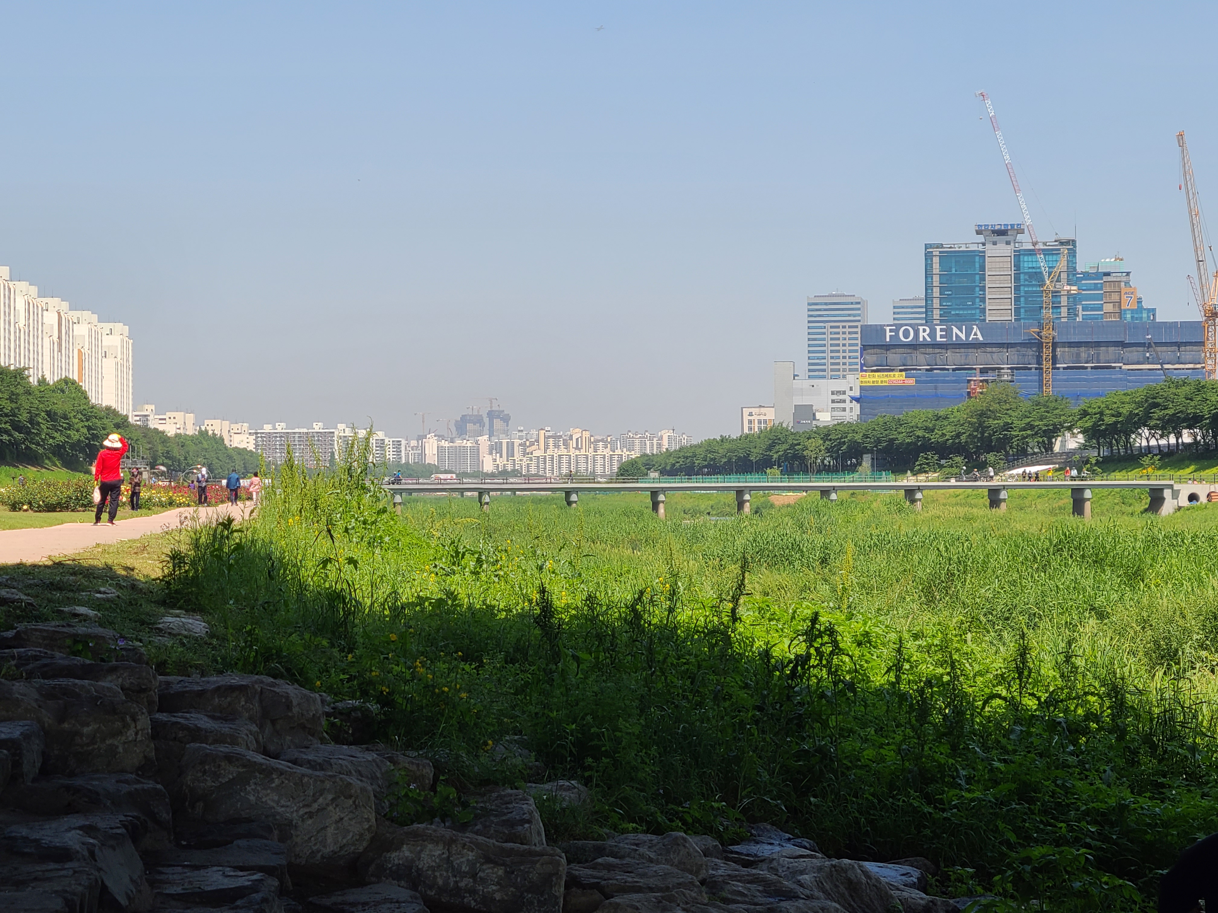 한강이 가까워 질수록 사람들이 많아진다.