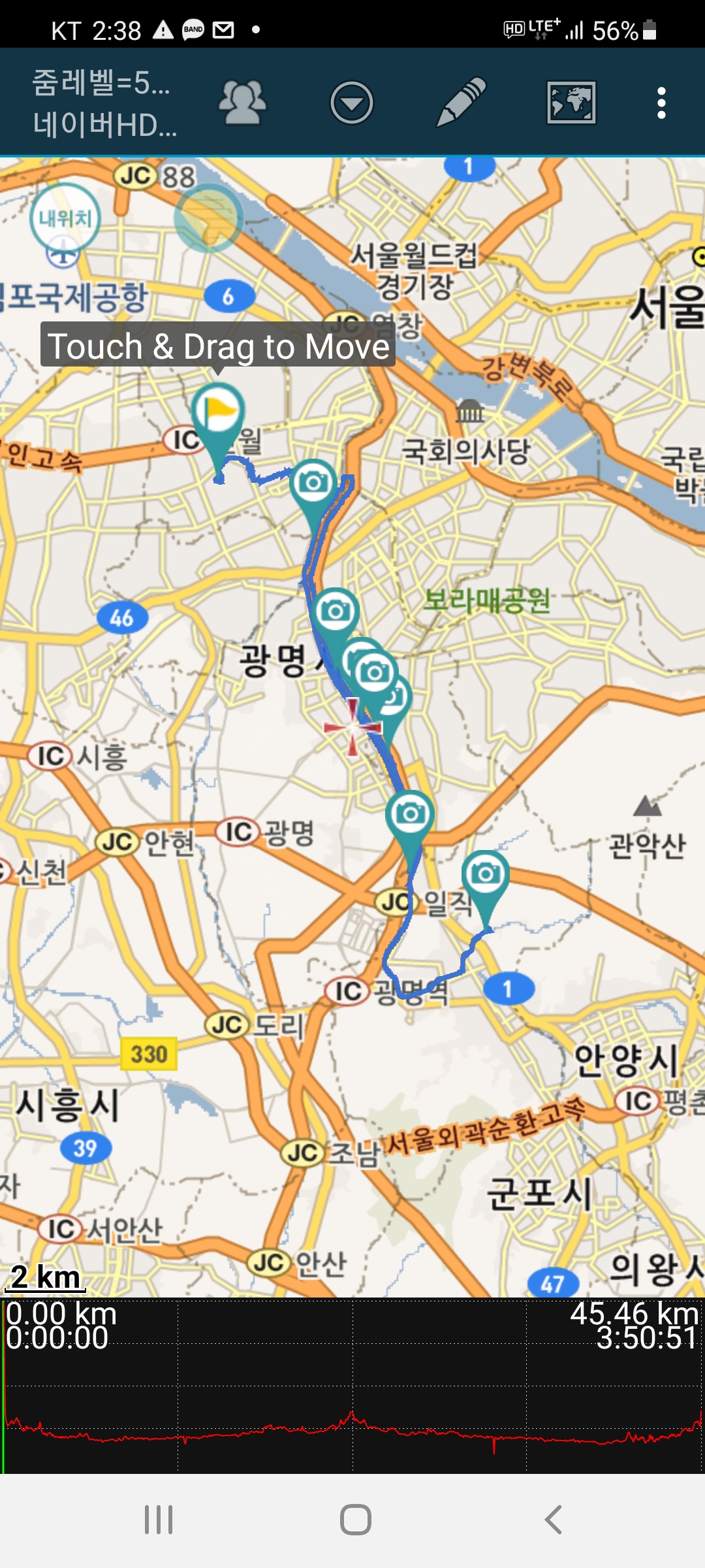 3.신정교-광명교-안양유원지-금천교-오금교-원점회귀,45.46km