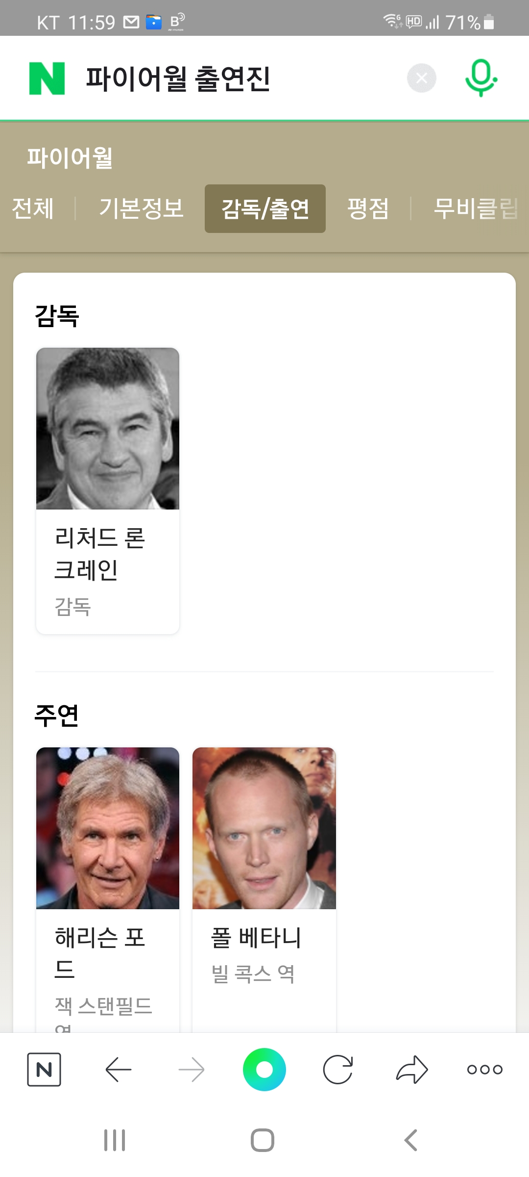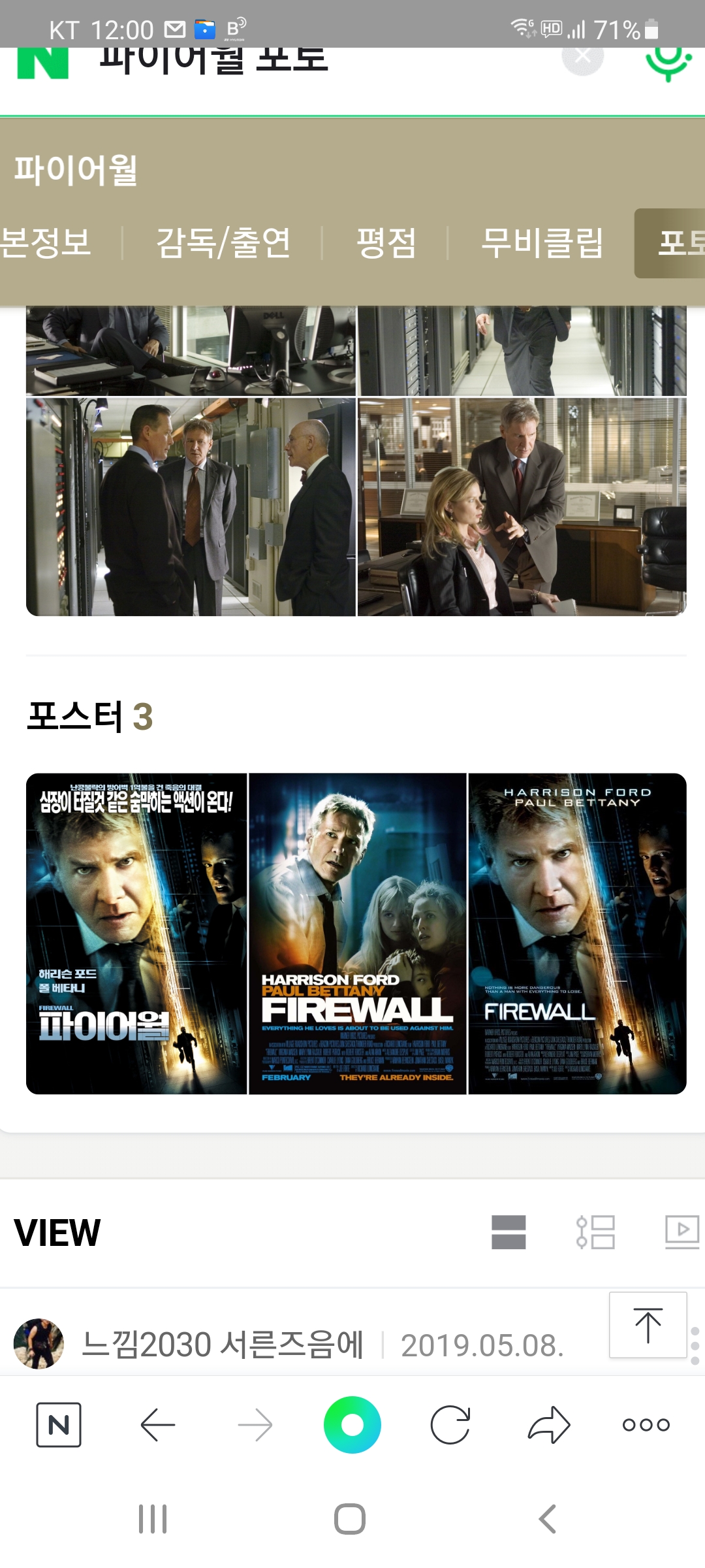 TV채널에서 감상한 해리슨 포드주연의 영화.