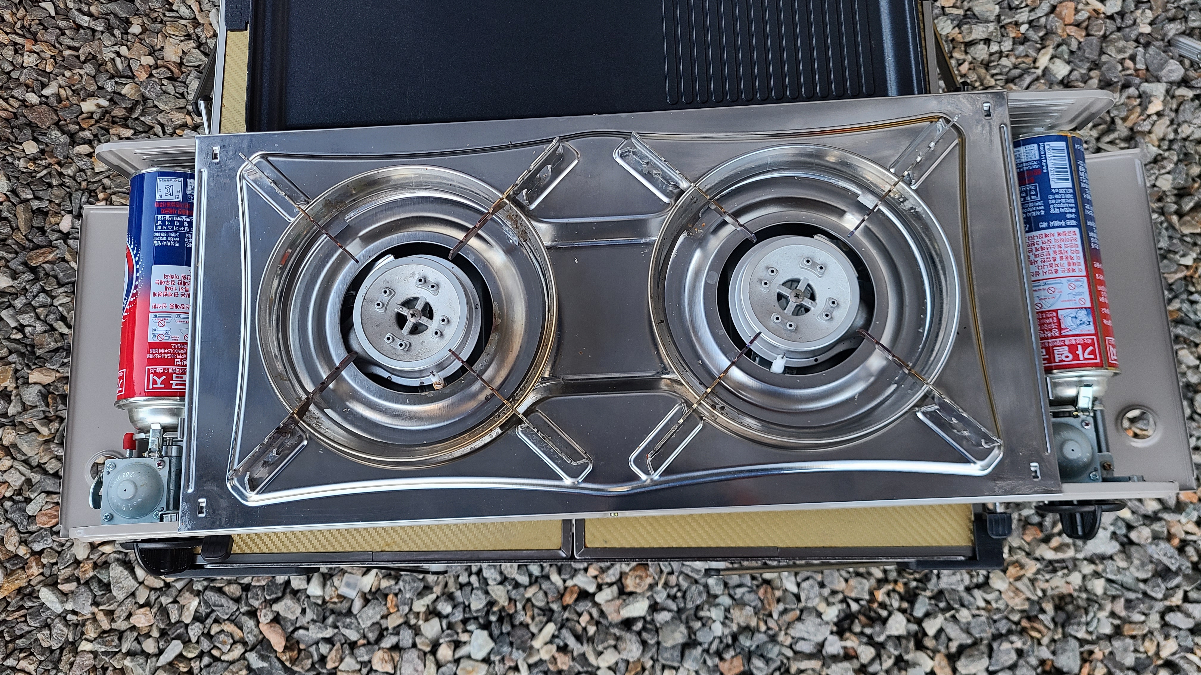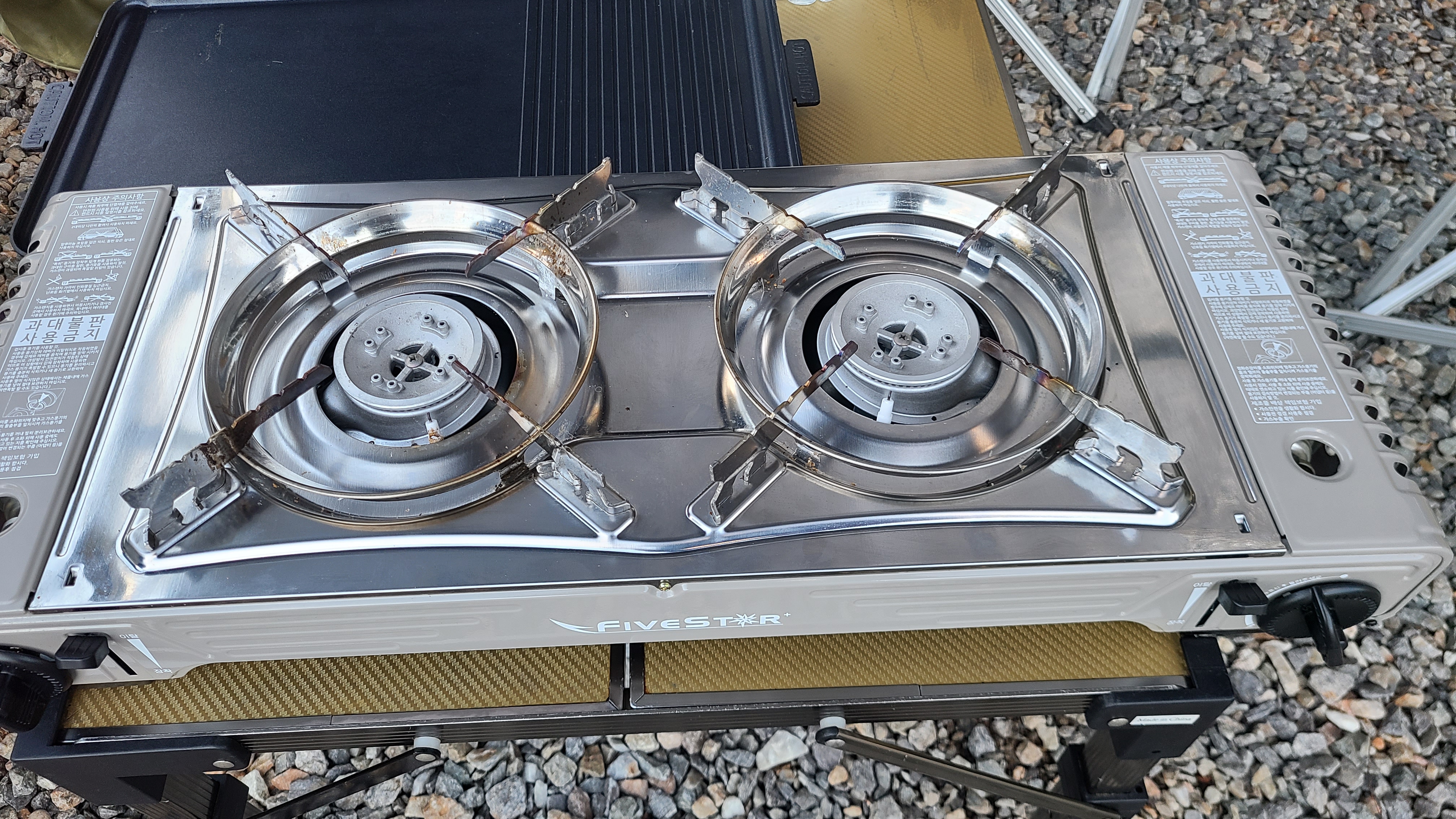 고기굽는 용도의 버너와 식사용2구 버너를 사용하고 있었는데,식사용2구 버너가 고장이 난것이다.