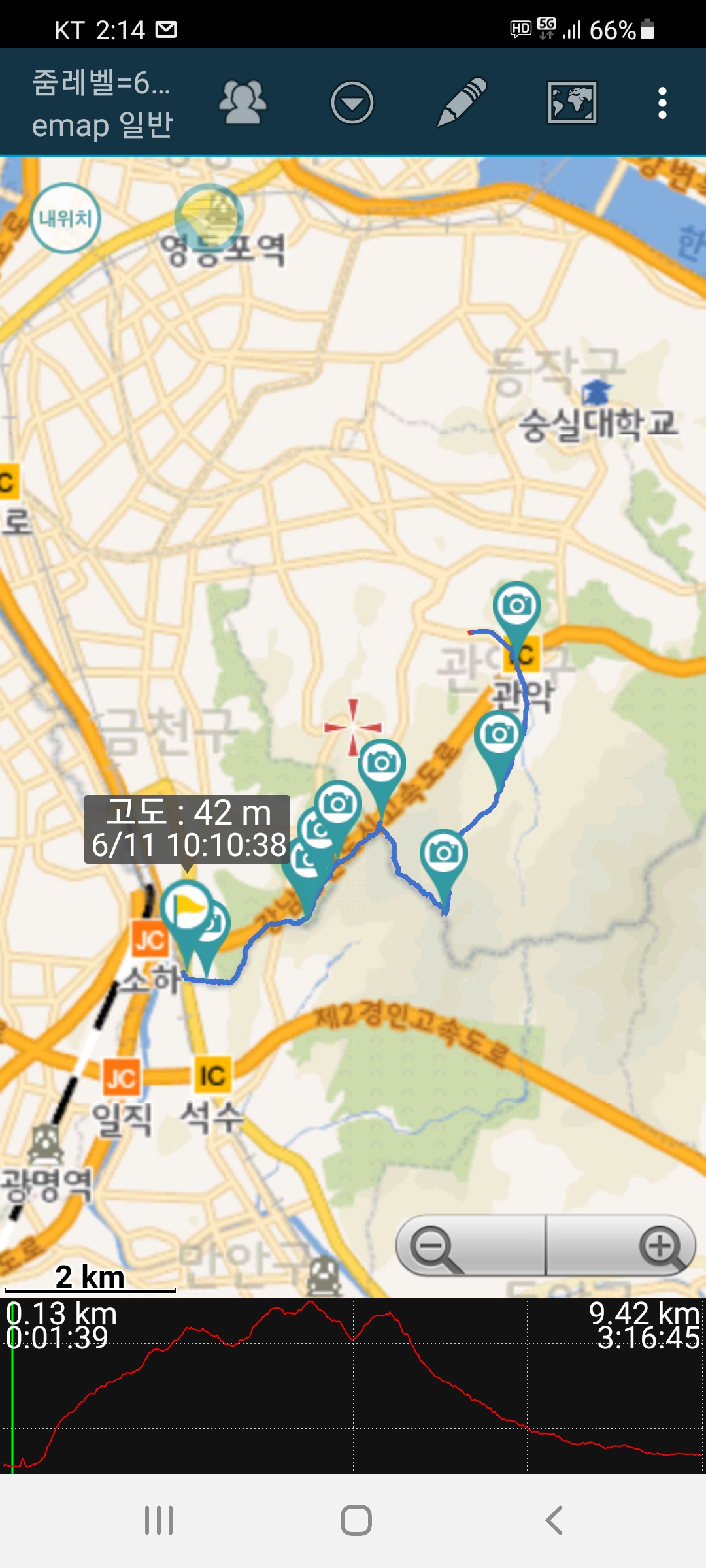 조금더 진행하려하였으나 도반이 내려가자고해 2광장으로 내린다.