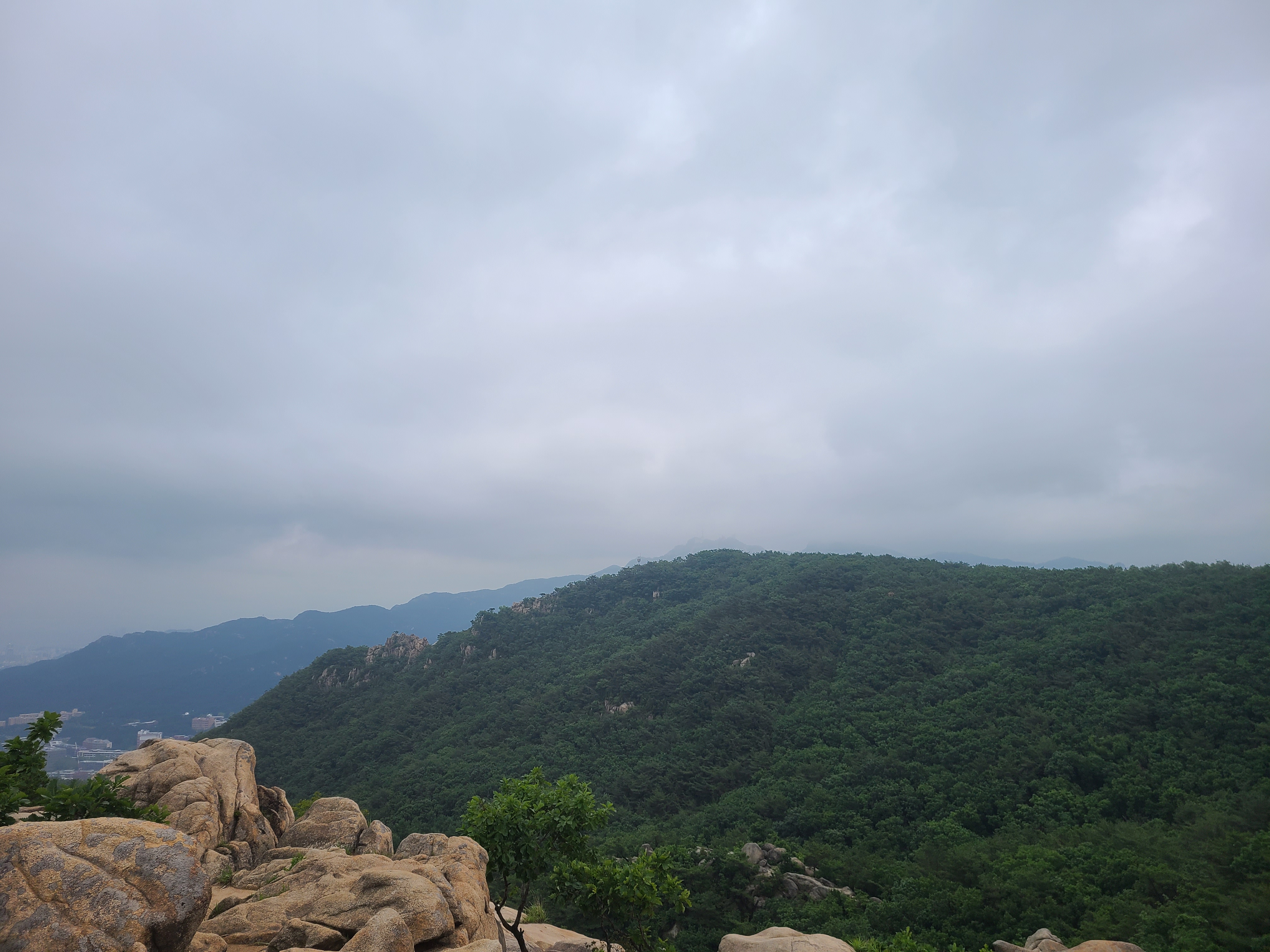 경인교대능선을 타고는 예전에 자주찾던 바위에 걸터앉아 남은 김밥과 과일을 먹고는 커피까지 마신다.