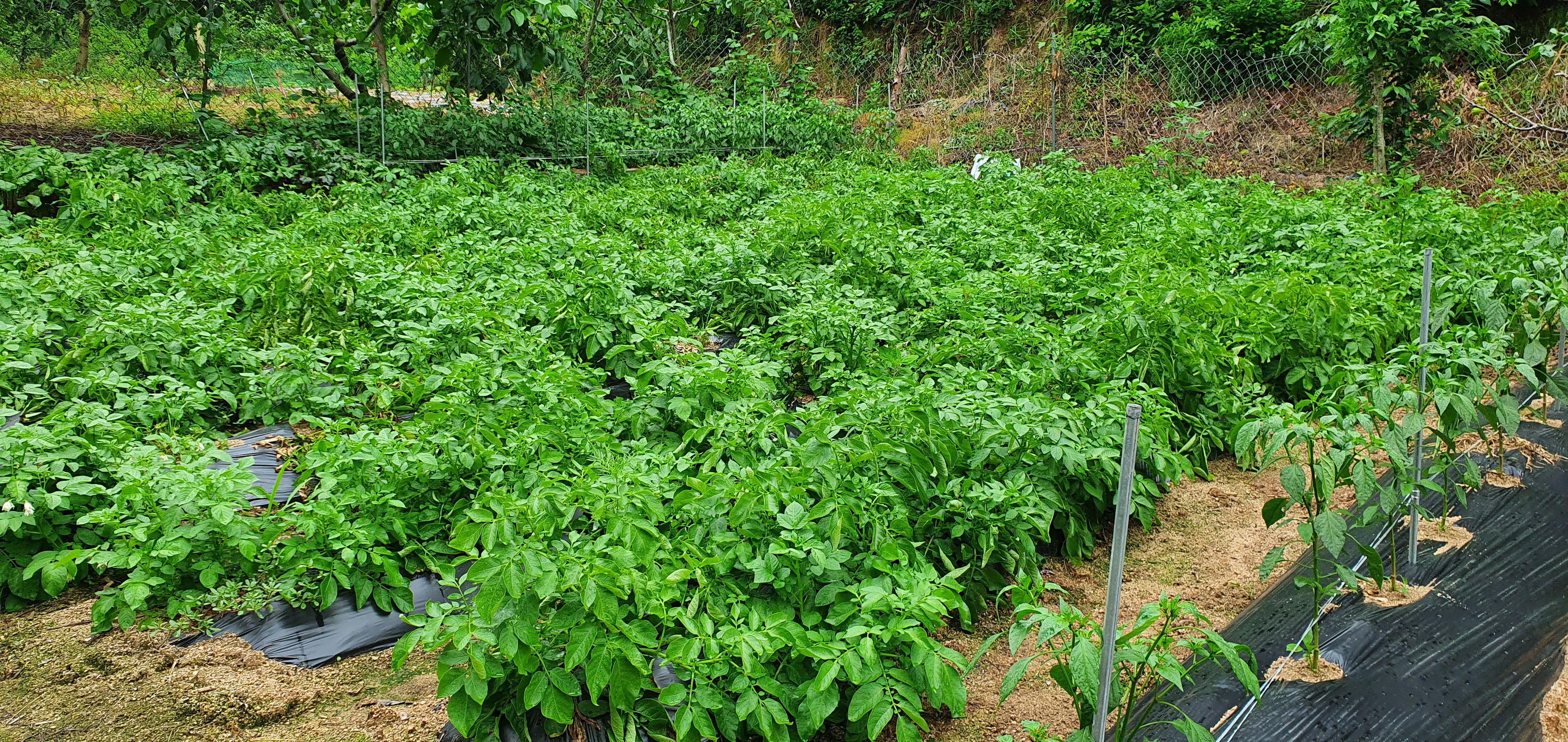 호두와 매실,자두등과 감자,콩,호박,오이,미나리등이 푸짐하게 익어가고 푸르러가고있다.