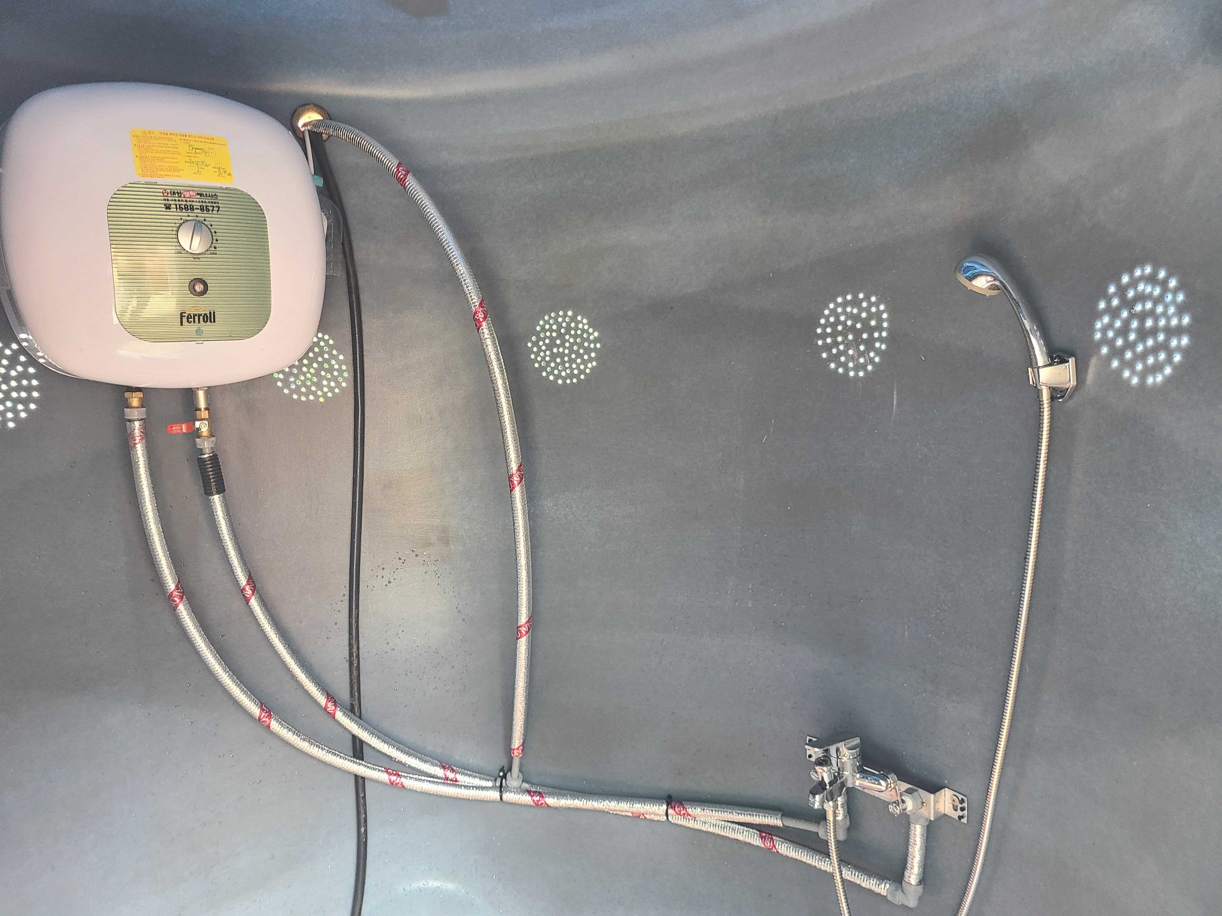 수압을 높이기 위해 펌프와 전기온수기를 달기로 하고 그 일체의 부품과 작업을 맡아 하기로 하였다.