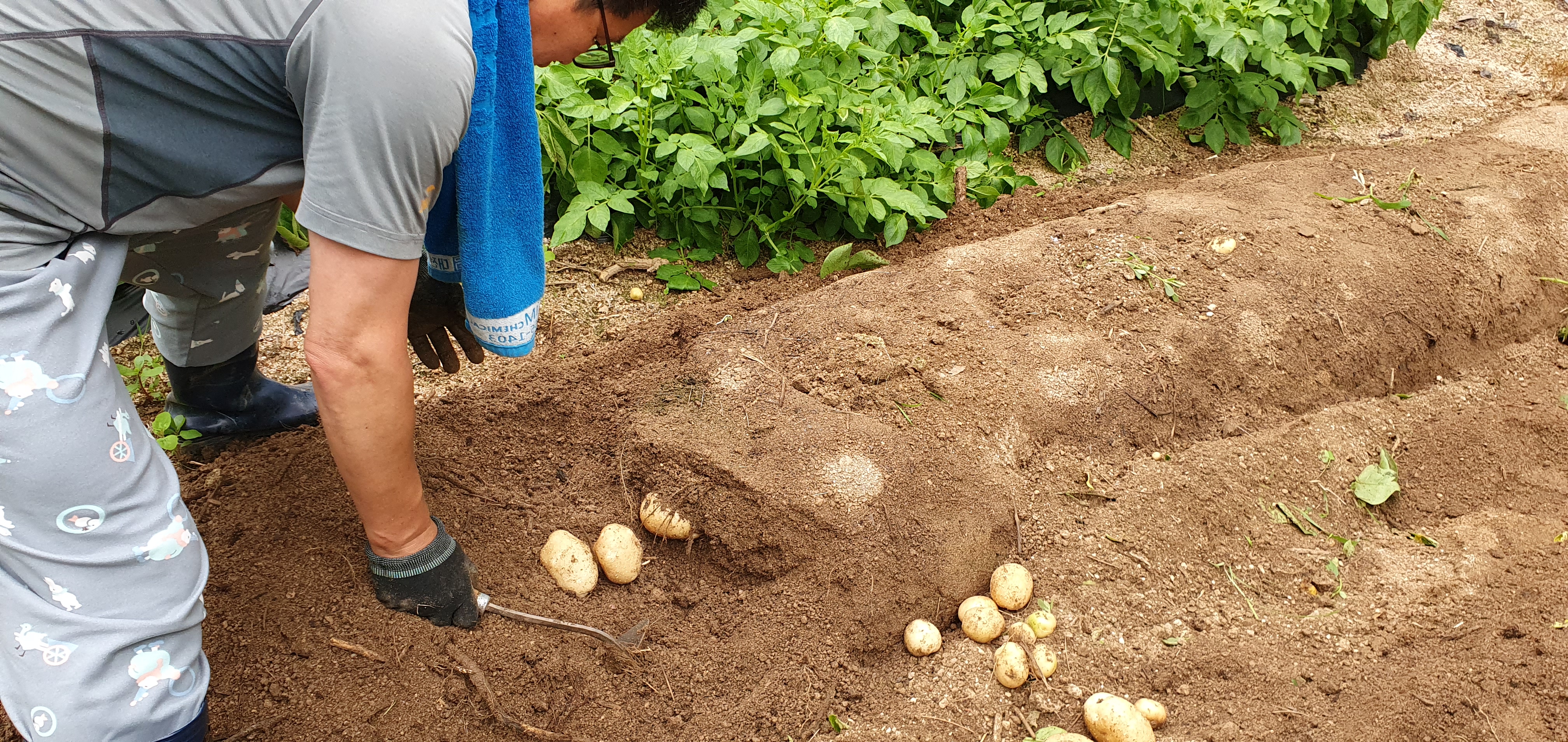 감자를 캐는 맛이 더 없이 좋고 즐겁다. 푸석한 흙을 호미질하면 어느사이 굵다란 감자가 모습을 나타내고 서너개가