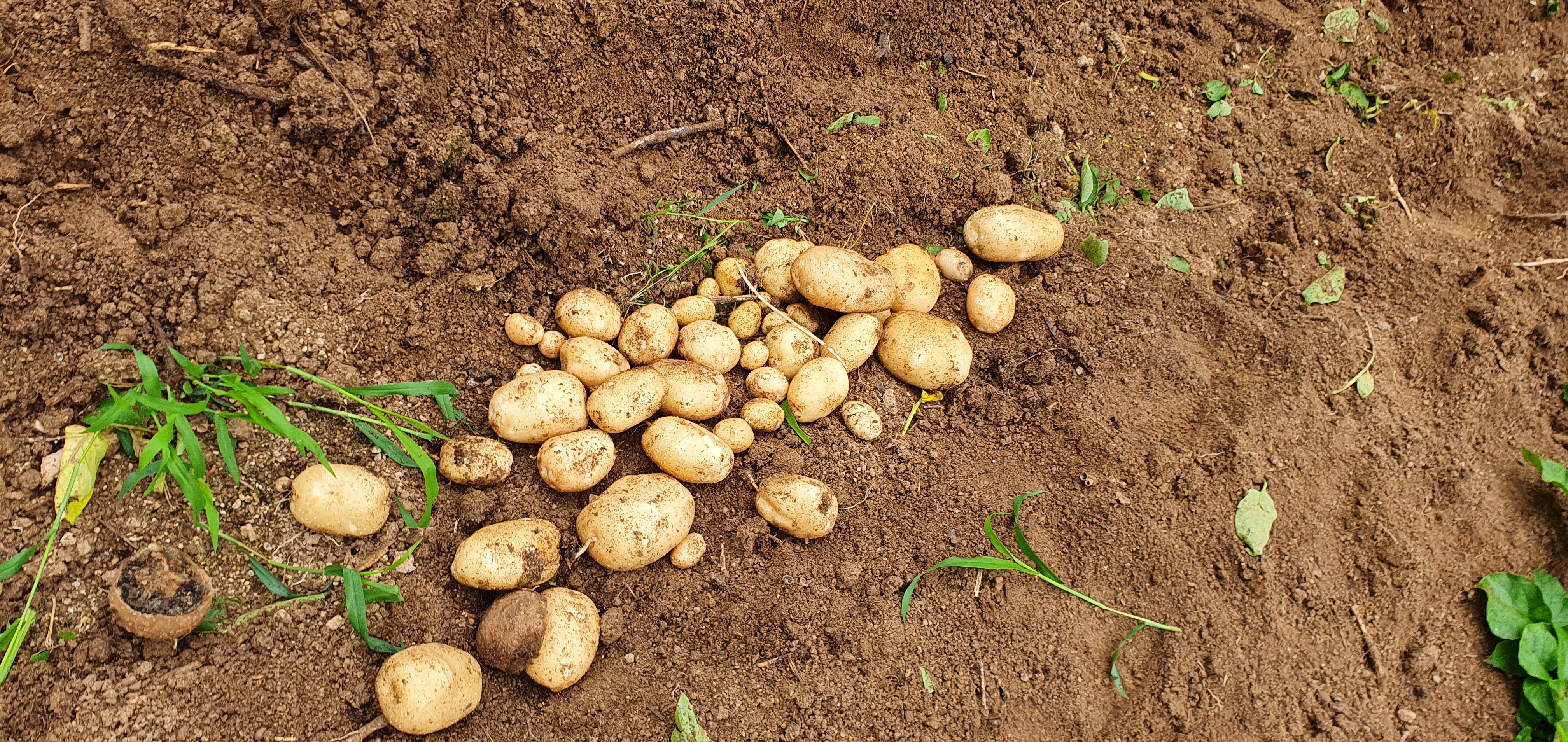 한고랑을 캤는데 상당한 양의 감자가 나온다.