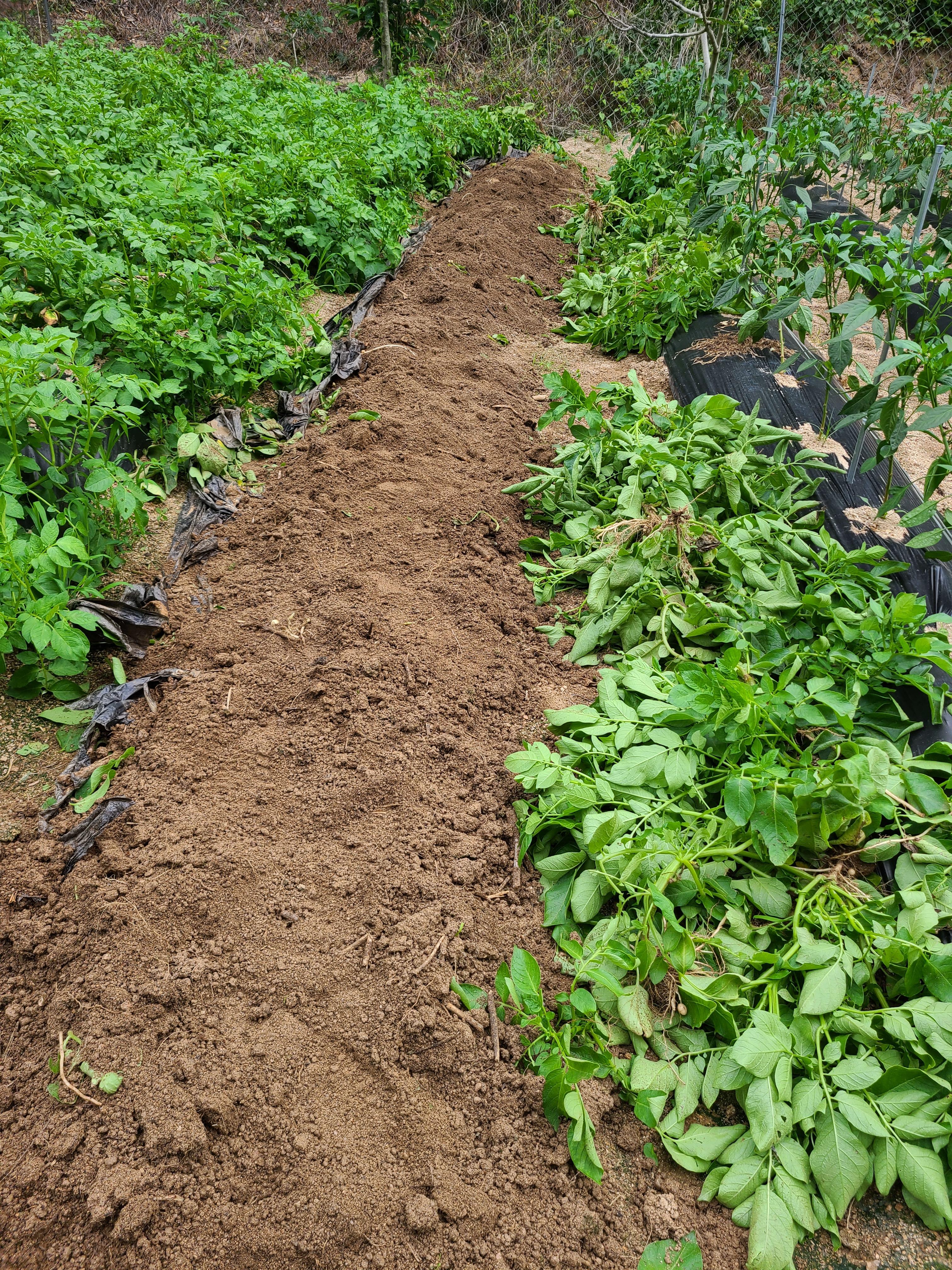 감자는 두고랑을 캐서 두박스정도가 되었고 형을 도와 여기저기 빈공간에 들깨를 심는다.