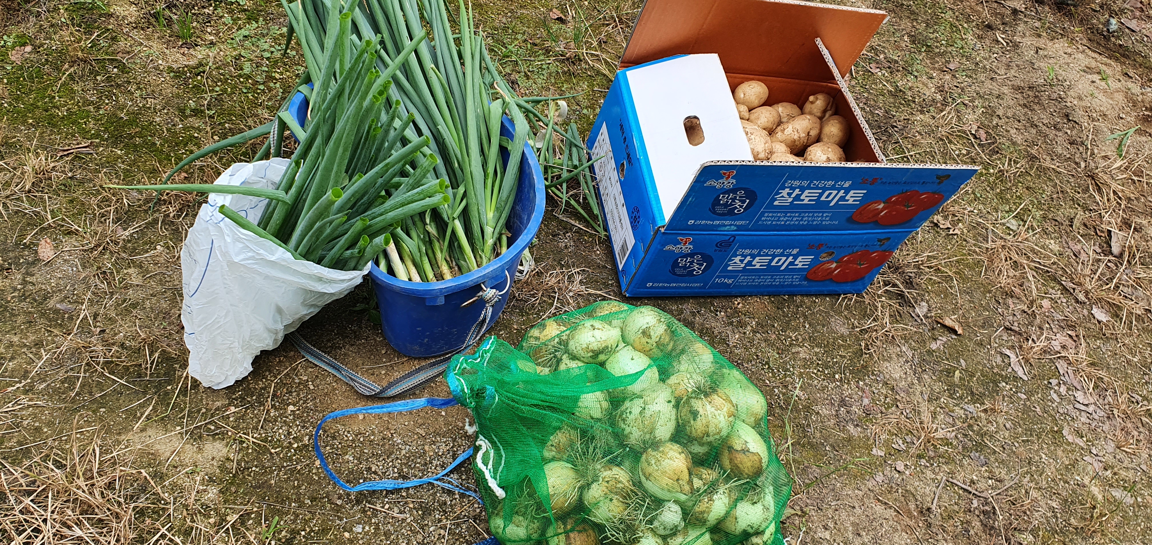 감자를 캐는 맛이 더 없이 좋고 즐겁다. 푸석한 흙을 호미질하면 어느사이 굵다란 감자가 모습을 나타내고 서너개가