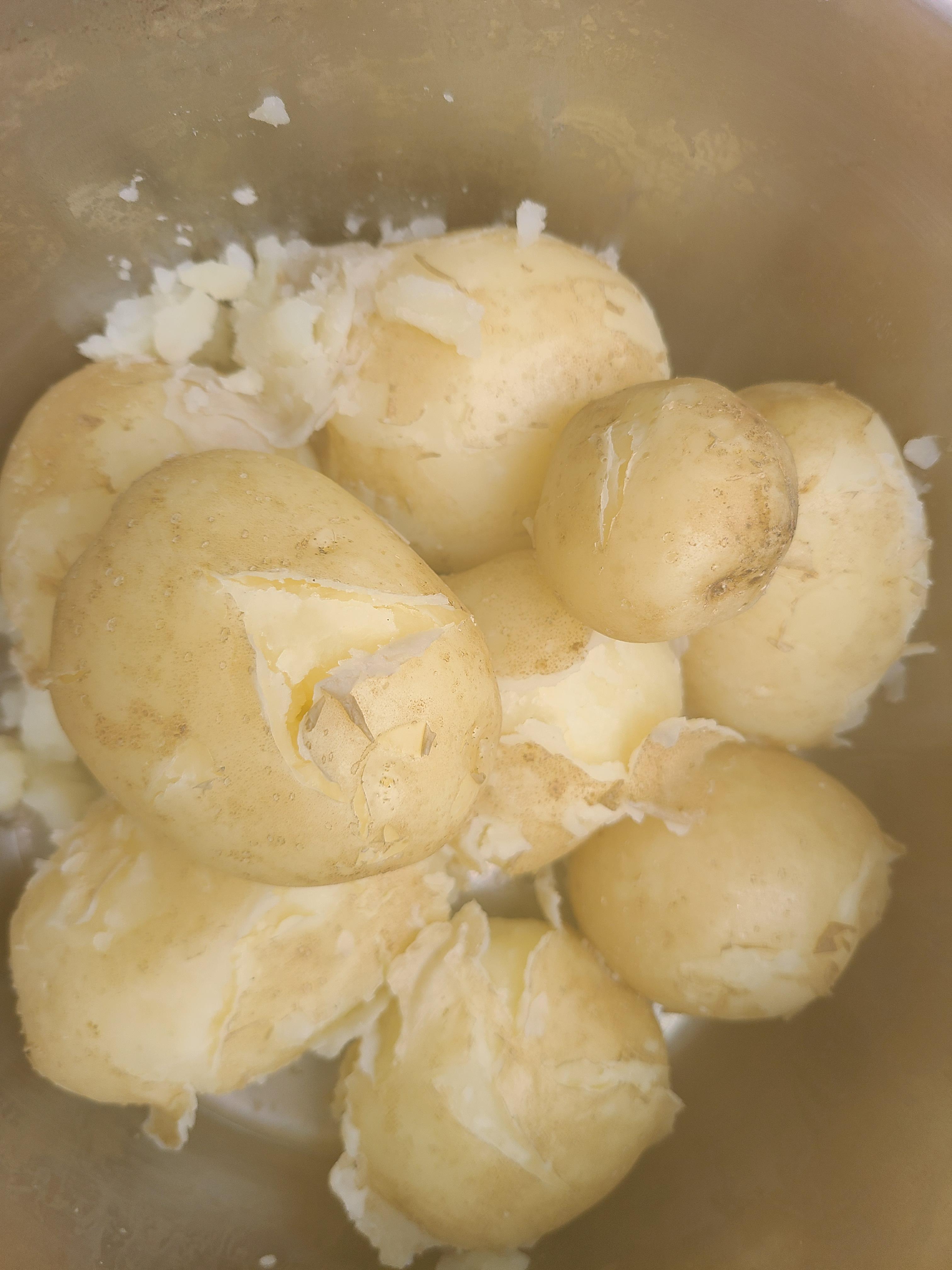 한박스정도를 캐고는 감자를 삶아 같이 앉아 맛을본다.