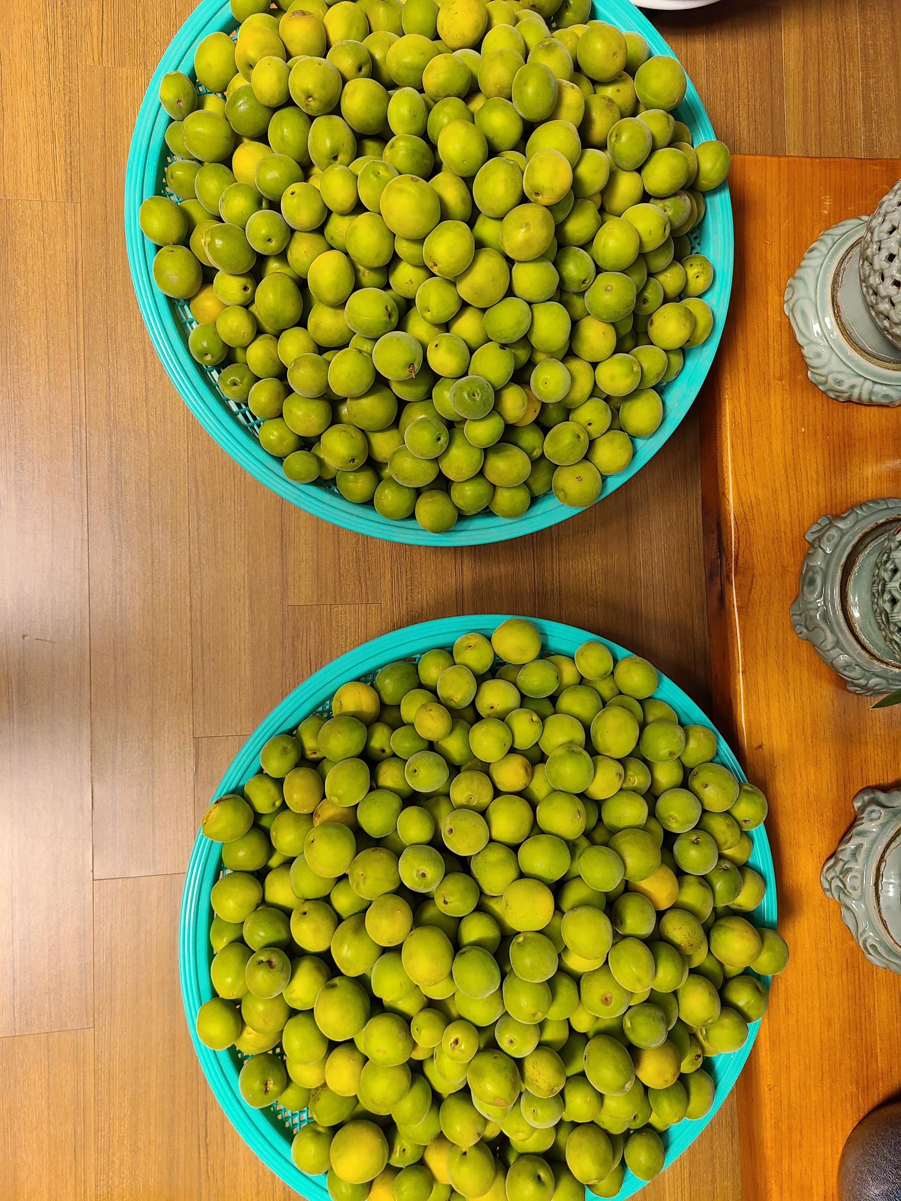 가져온 매실을 세척하고 건조하여 다음날 담그려고 하였더니 도반이 장아찌를 준비하니 밤늦게 액기스를 담고