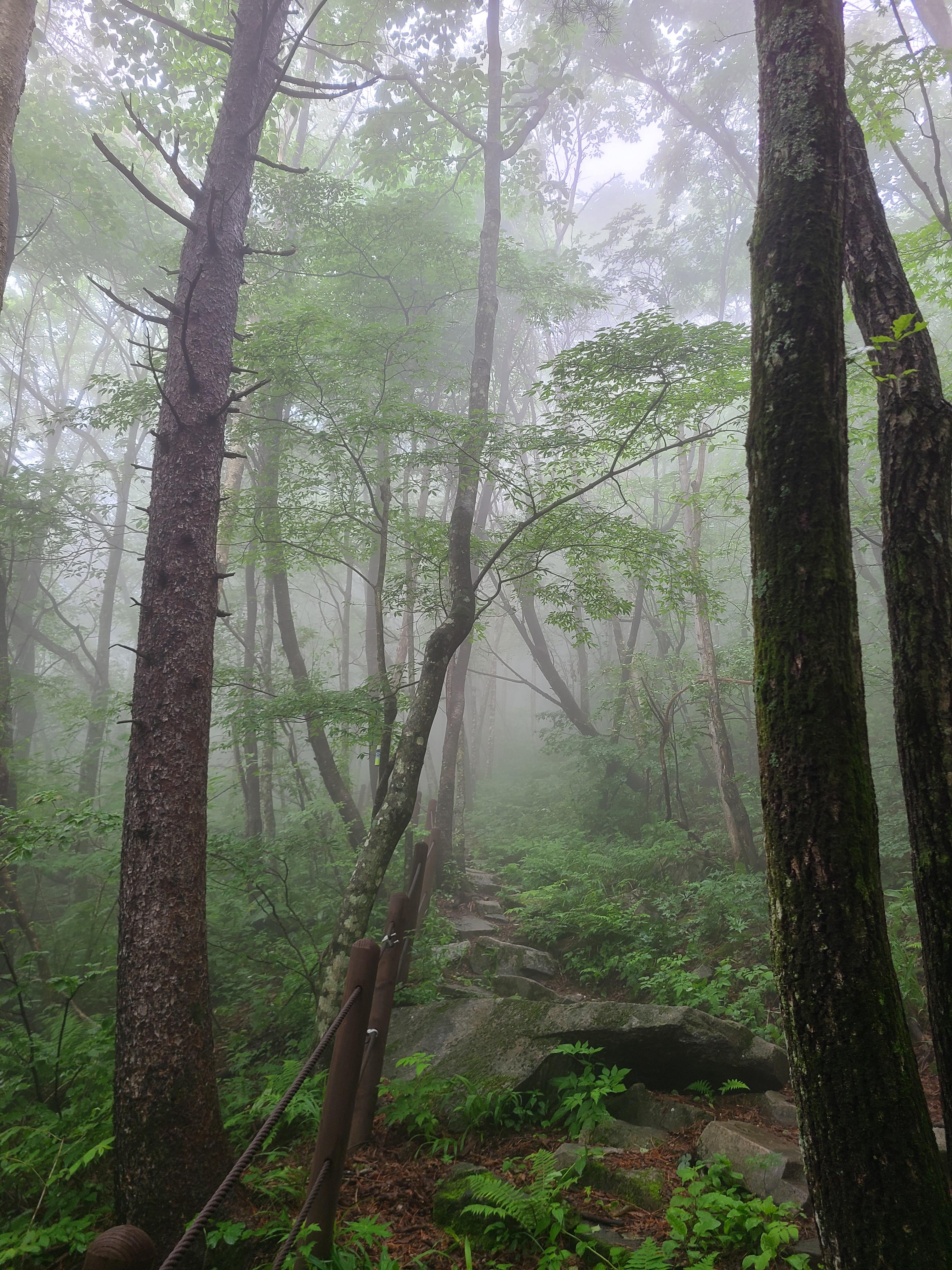 조금 오르니 부부한팀이 벌써 하산을 하고있다. 아마도 비오는 새벽에 올랐나보다.