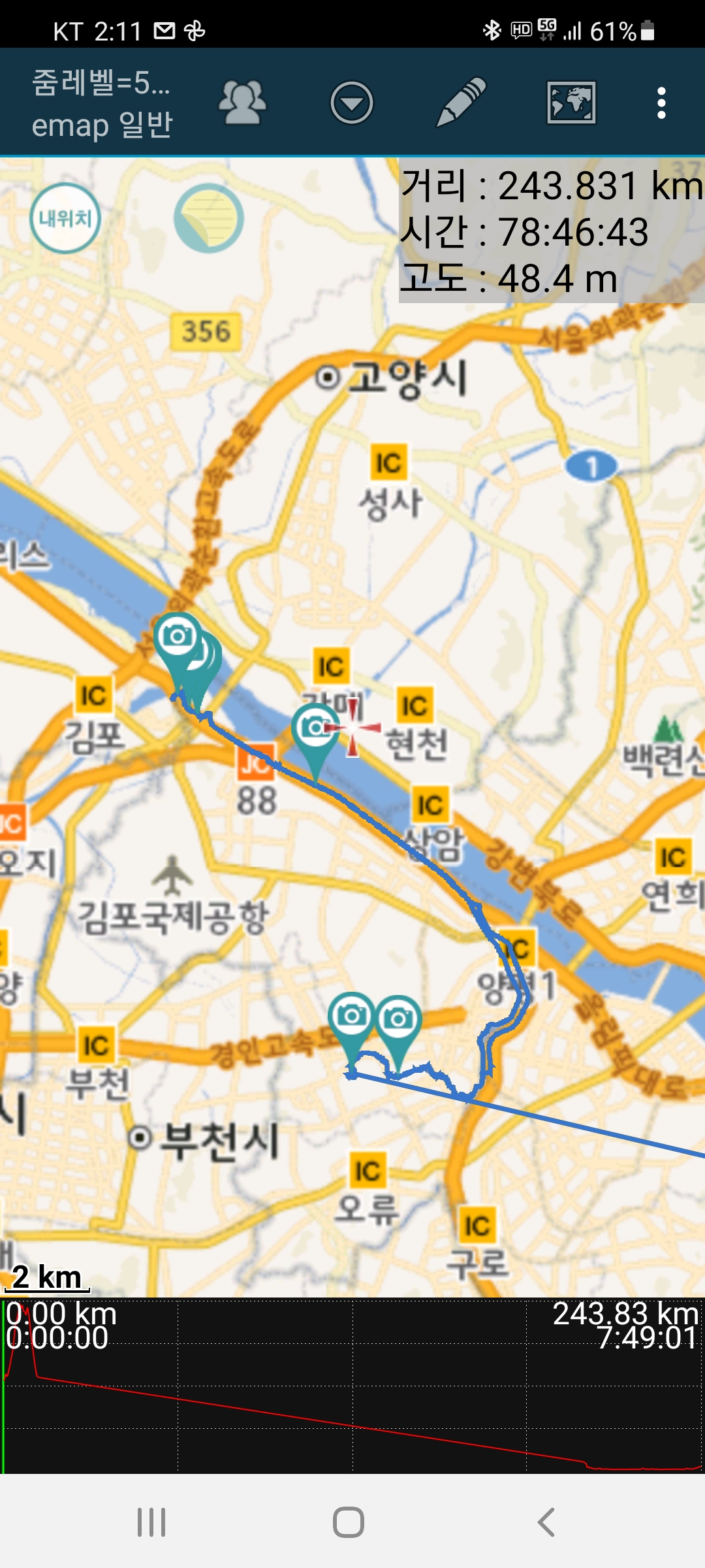 신정교를 지나 목동으로해서 귀가하니 3시간45분이 소요되었다.