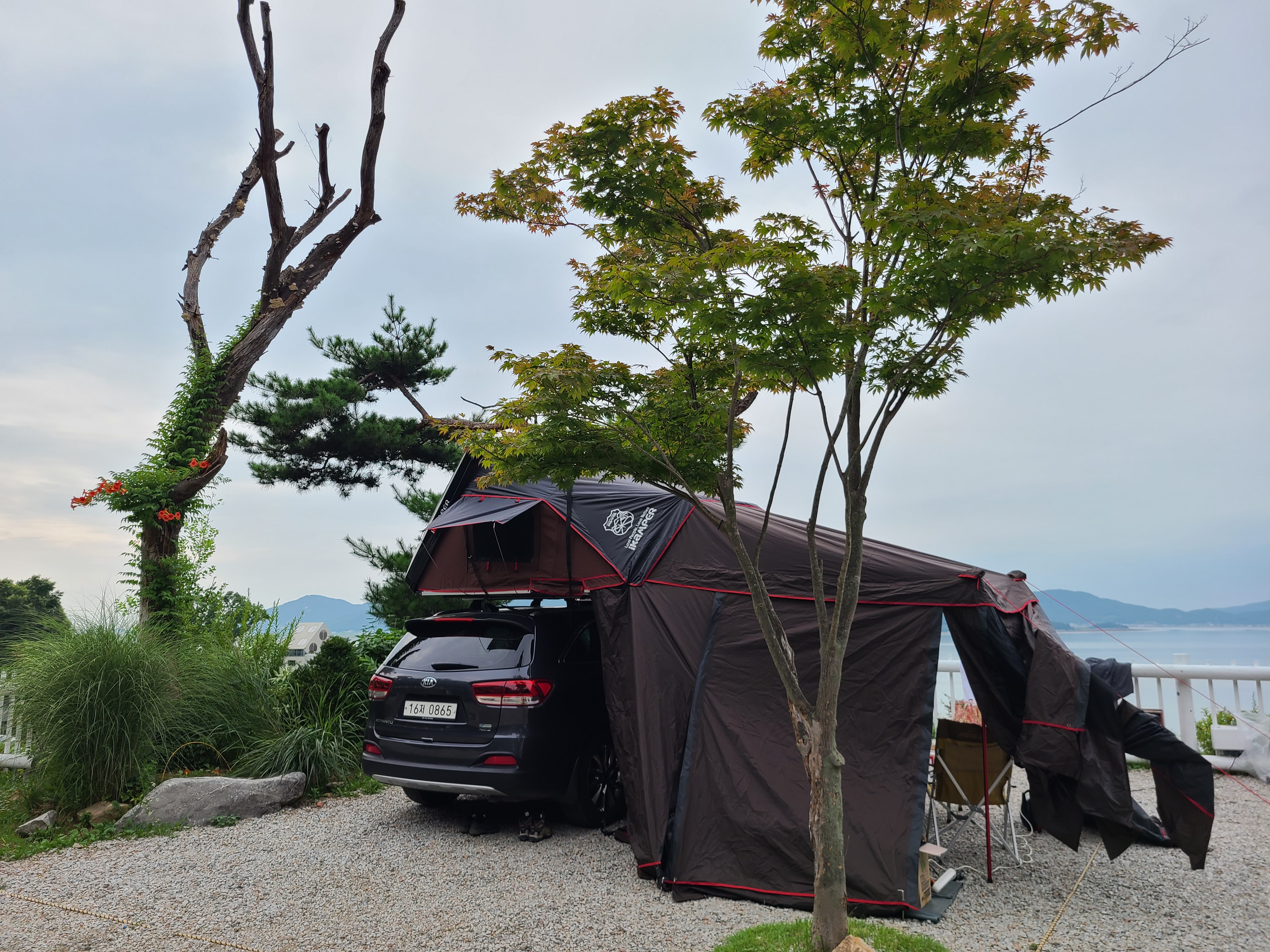 텐트를 설치하고 흐르는 땀을 샤워장에서 씻고 의자에 앉아 바다를 바라보니 날아갈것 같다.