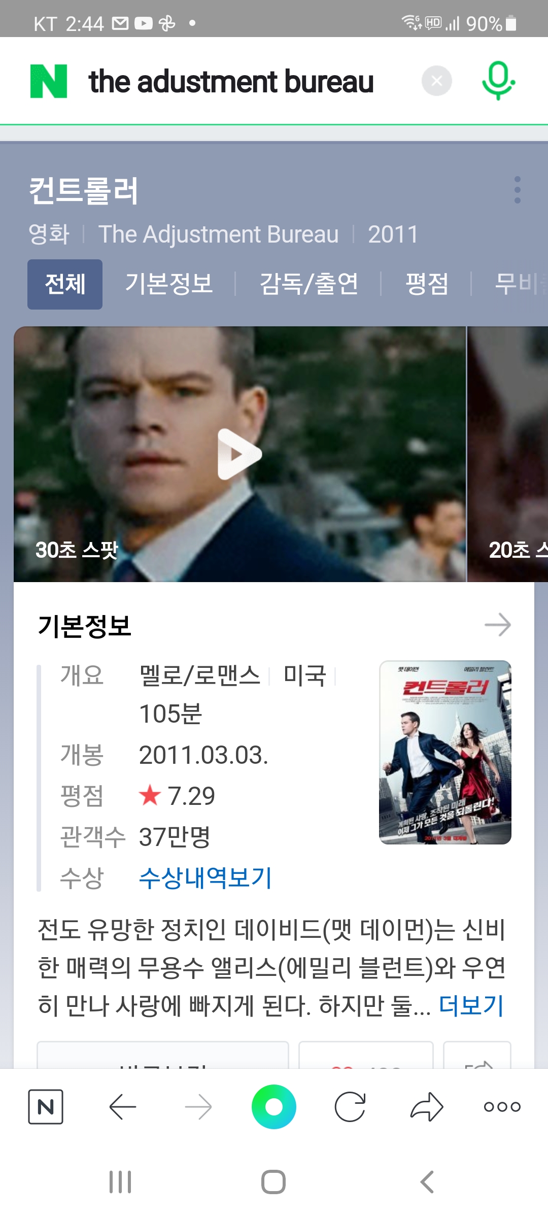 The Adustment Bureau. 맷 데이먼,에밀리블런트주연