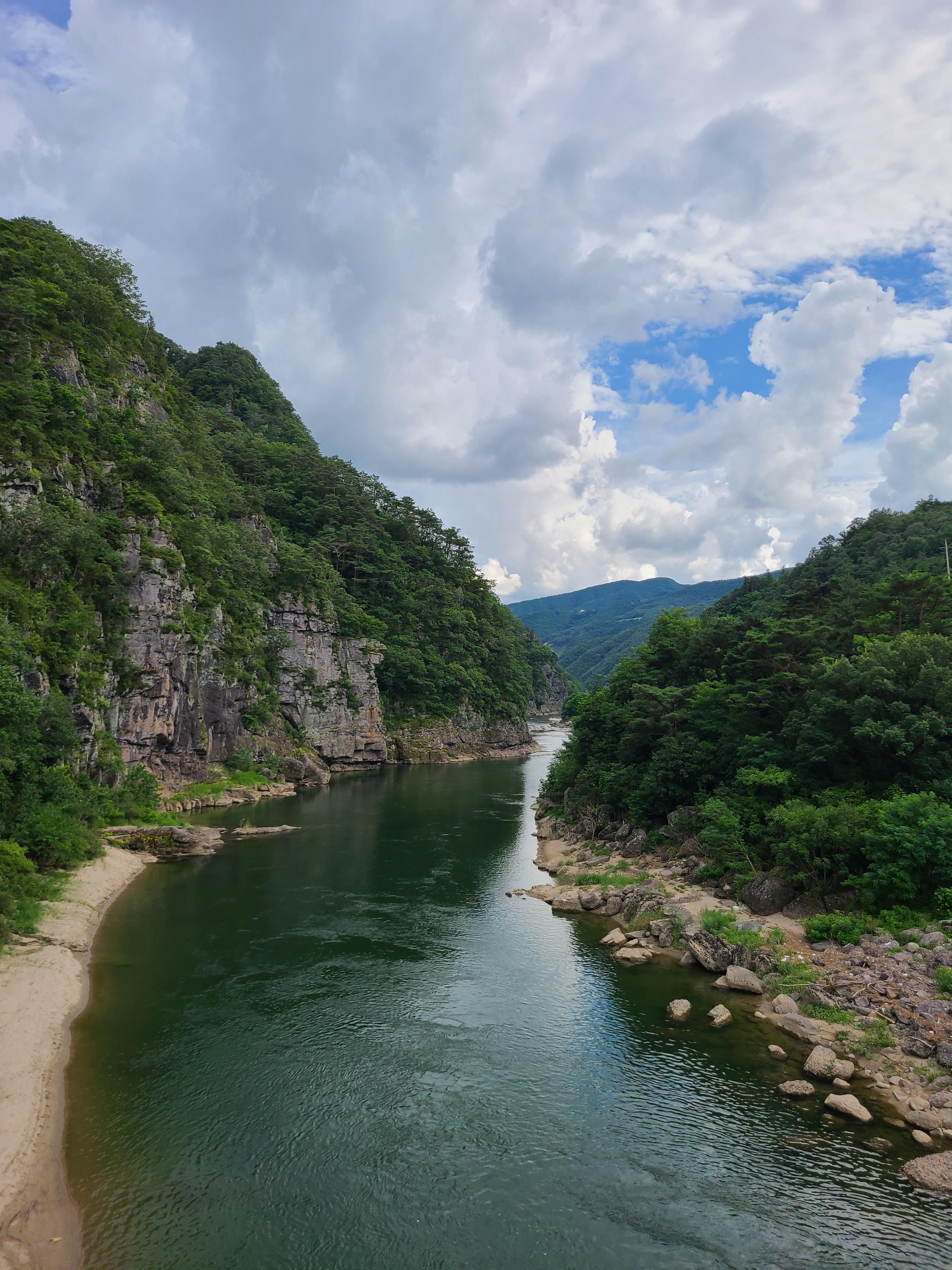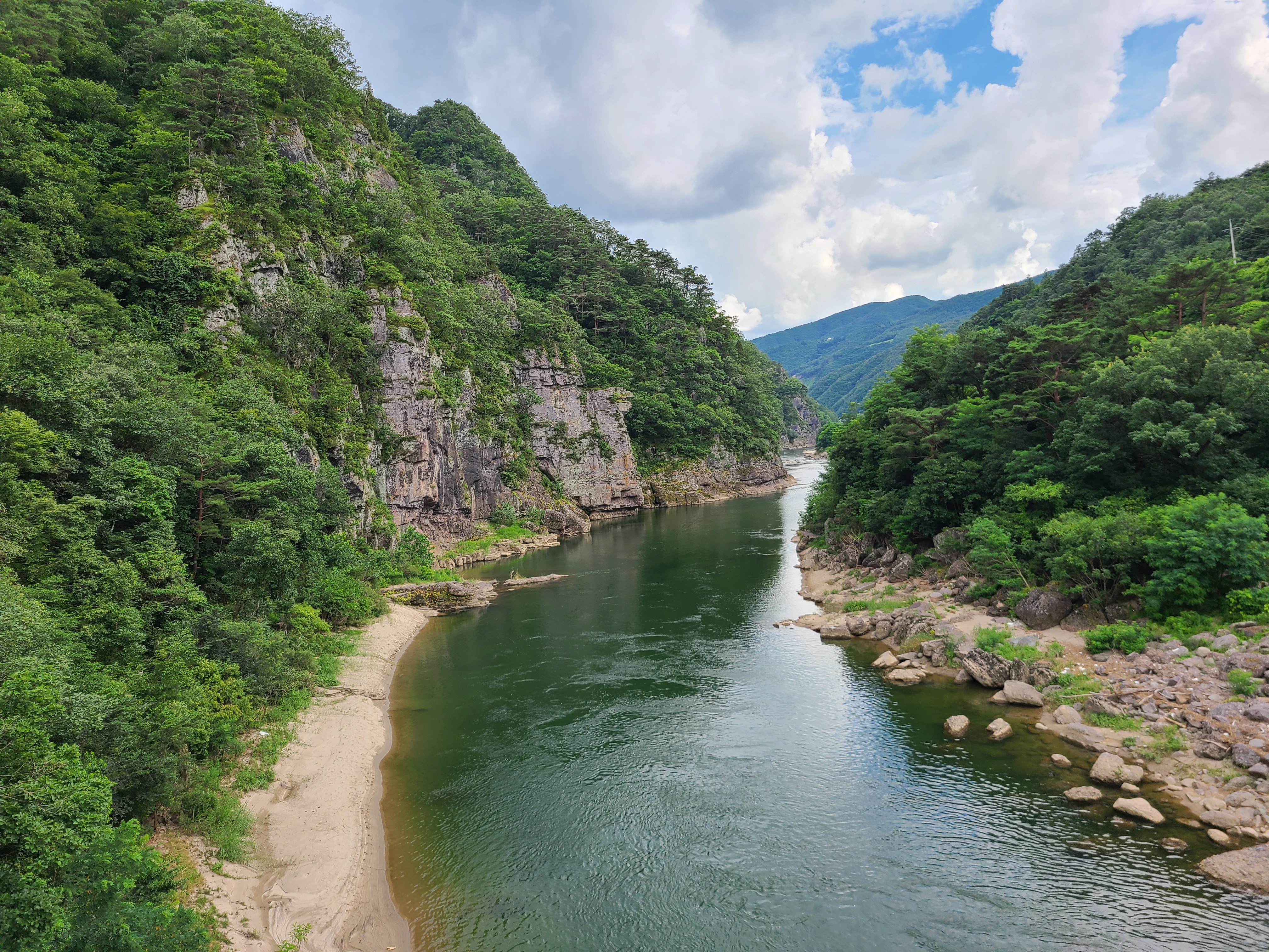계곡물이 시원하고 수량이 많아 좋기만하여 레프팅을 많이 하였다던데 코로나때문인지 한가롭기만 하다.