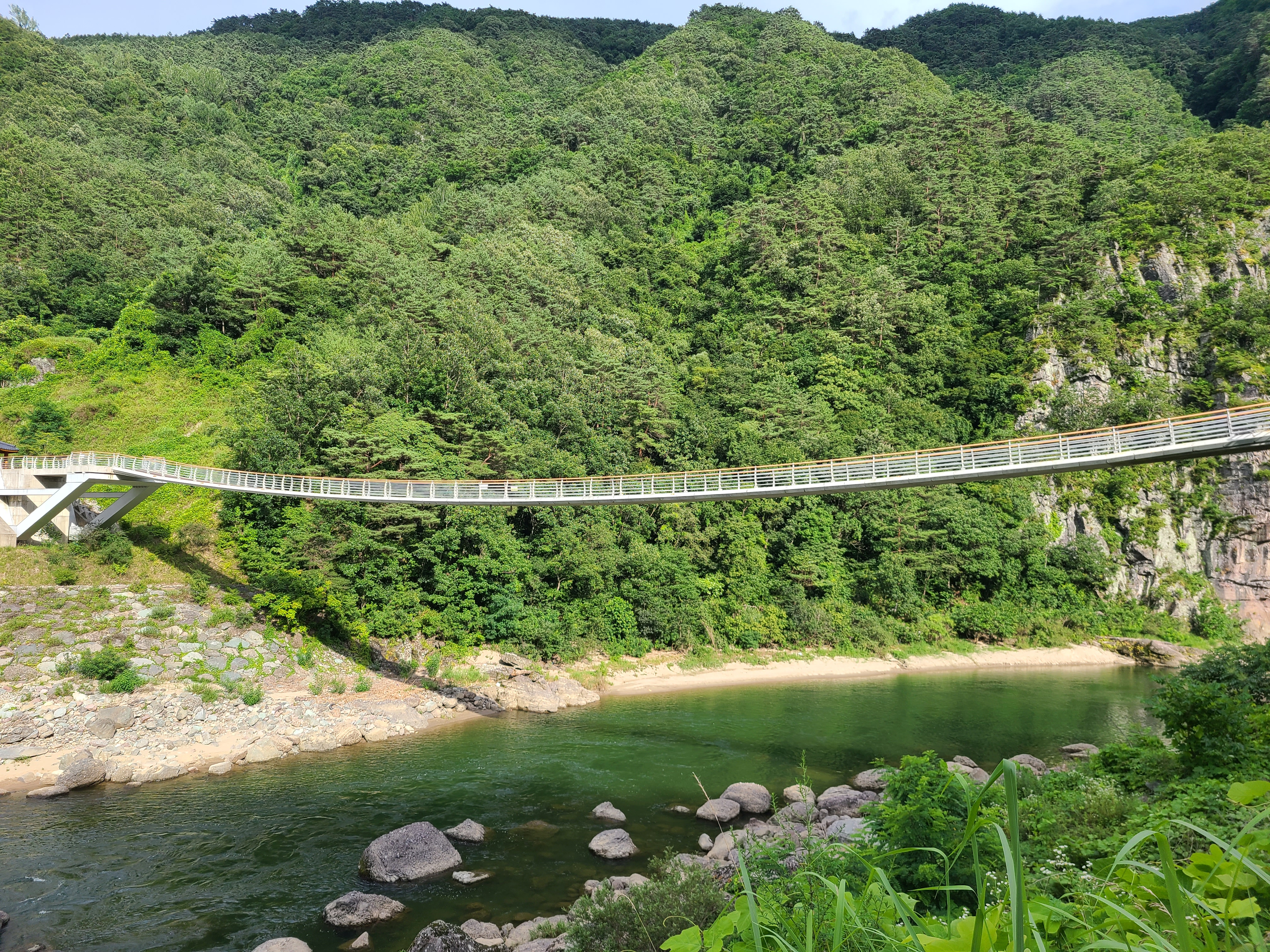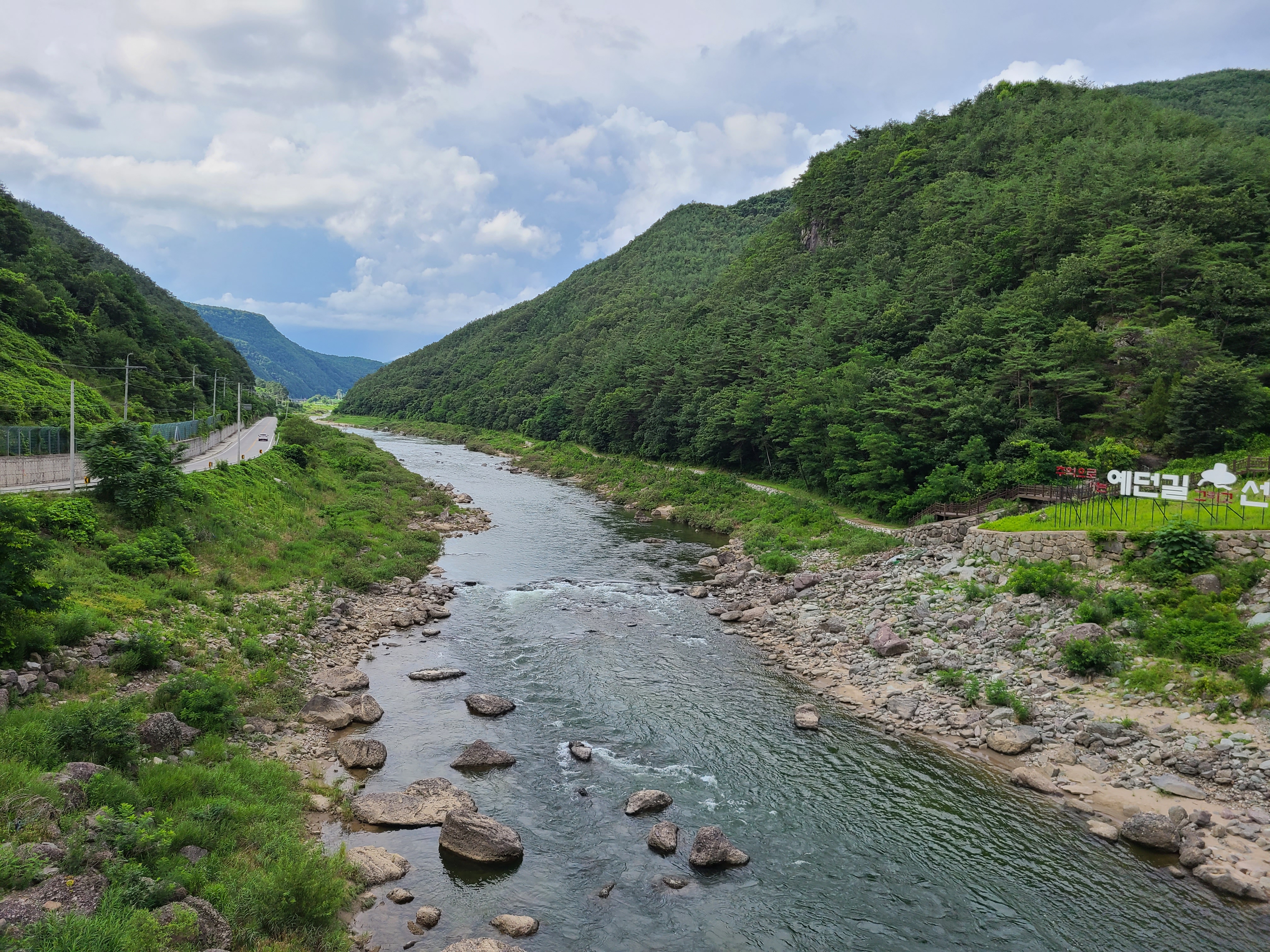 계곡물이 시원하고 수량이 많아 좋기만하여 레프팅을 많이 하였다던데 코로나때문인지 한가롭기만 하다.