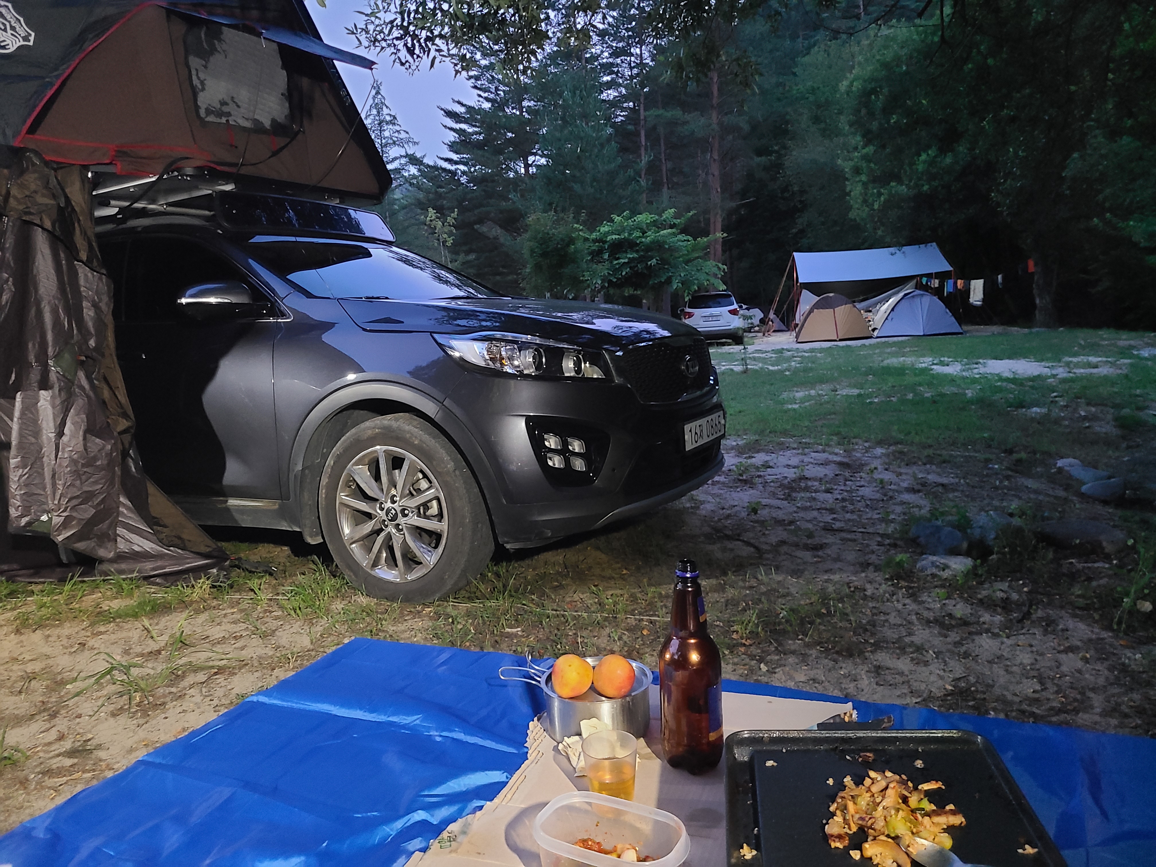 캠핑의 맛이 이것이고 조용하고 공기좋은 곳에 있으니 술맛이 배가된다.