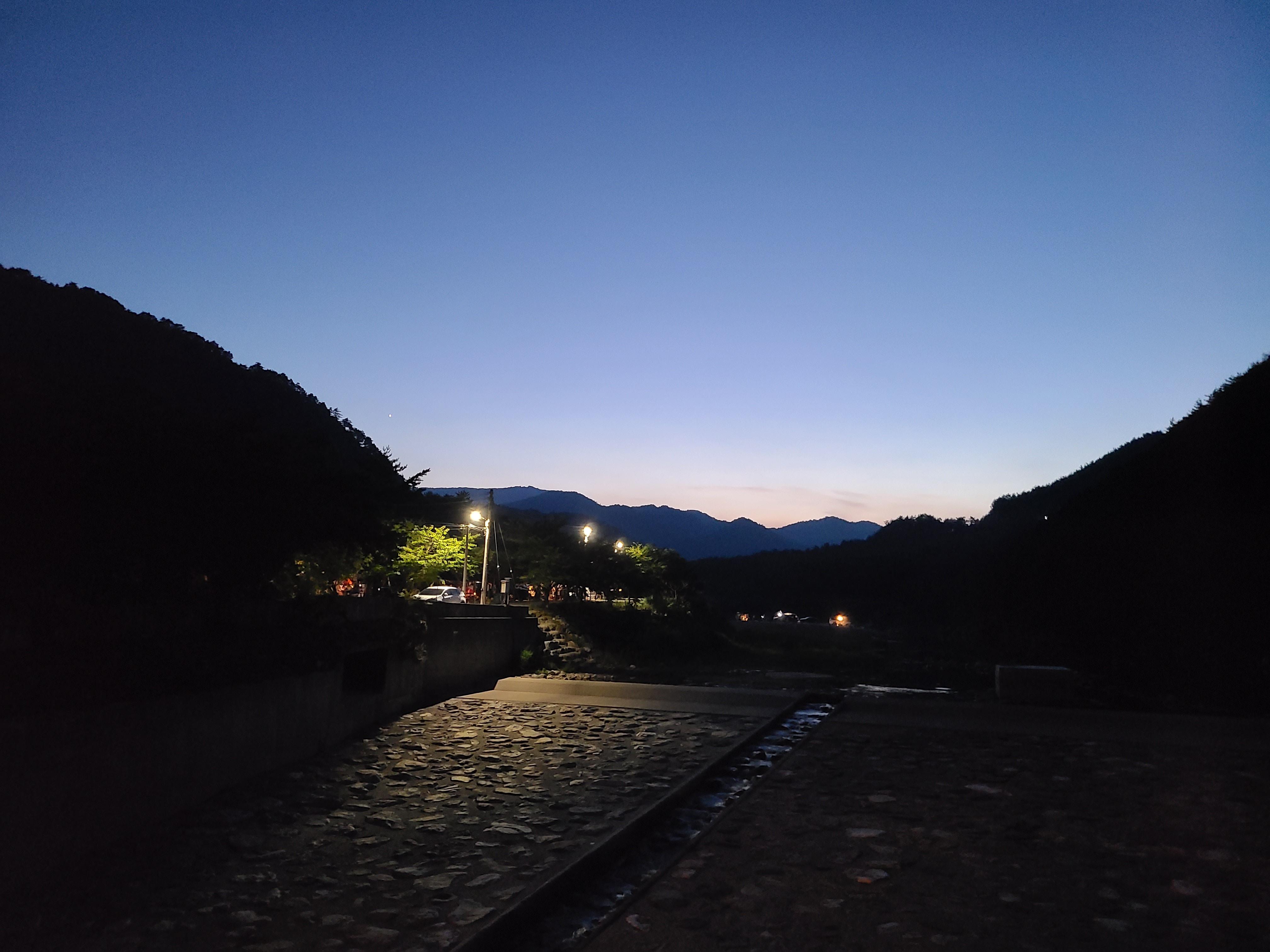 아직은 저녁무렵이니 부근을 걸어보니 조그만한 강물이 흐르고 그곳에 콘크리드 보를 설치하여 물을 가두어두니