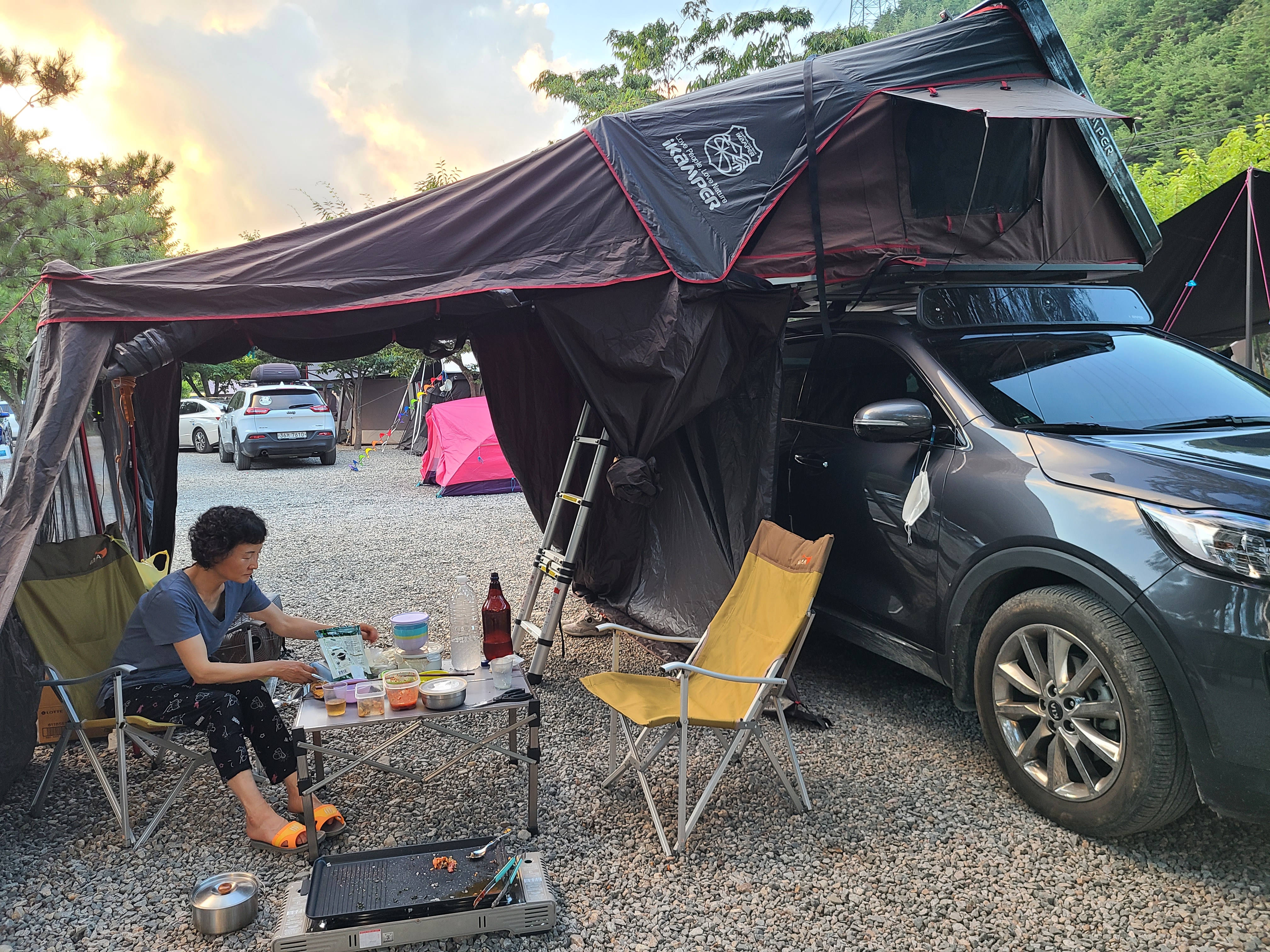 사이트마다 다닥다닥붙어 텐트가 쳐저있고 옆텐트와 이웃 텐트의 말소리도 들릴 정도이니 심하다싶지만 어쩌겠는가.