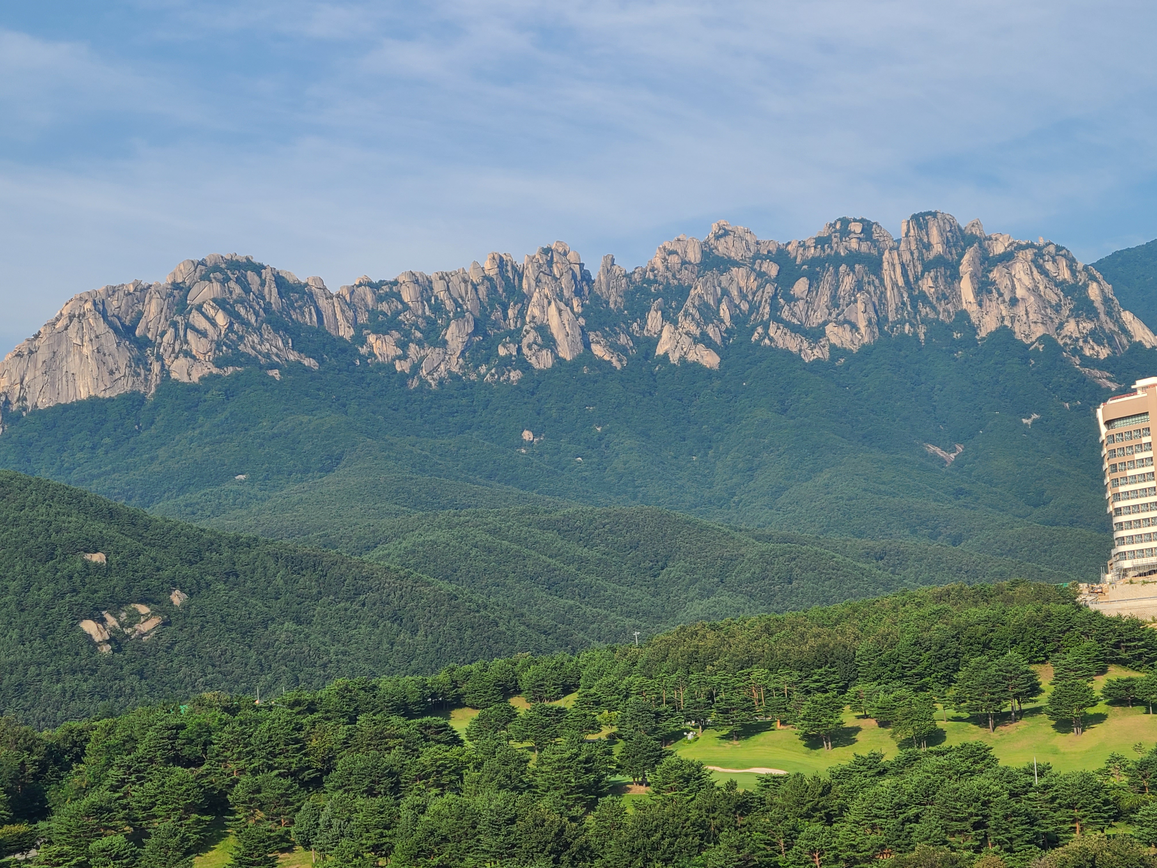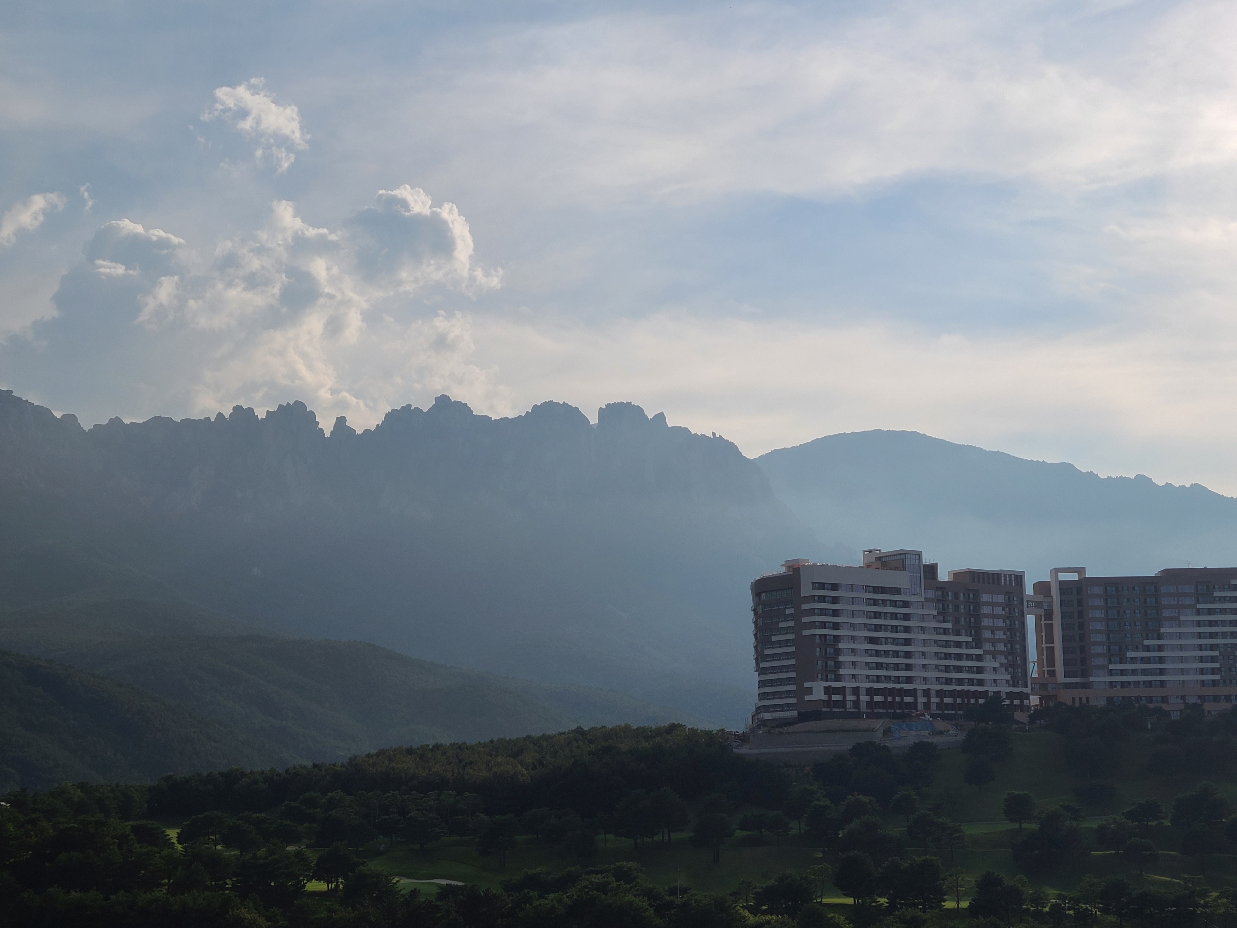콘도에서 바라보는 설악산과 울산바위가 웅장하게 시선을 압도한다.