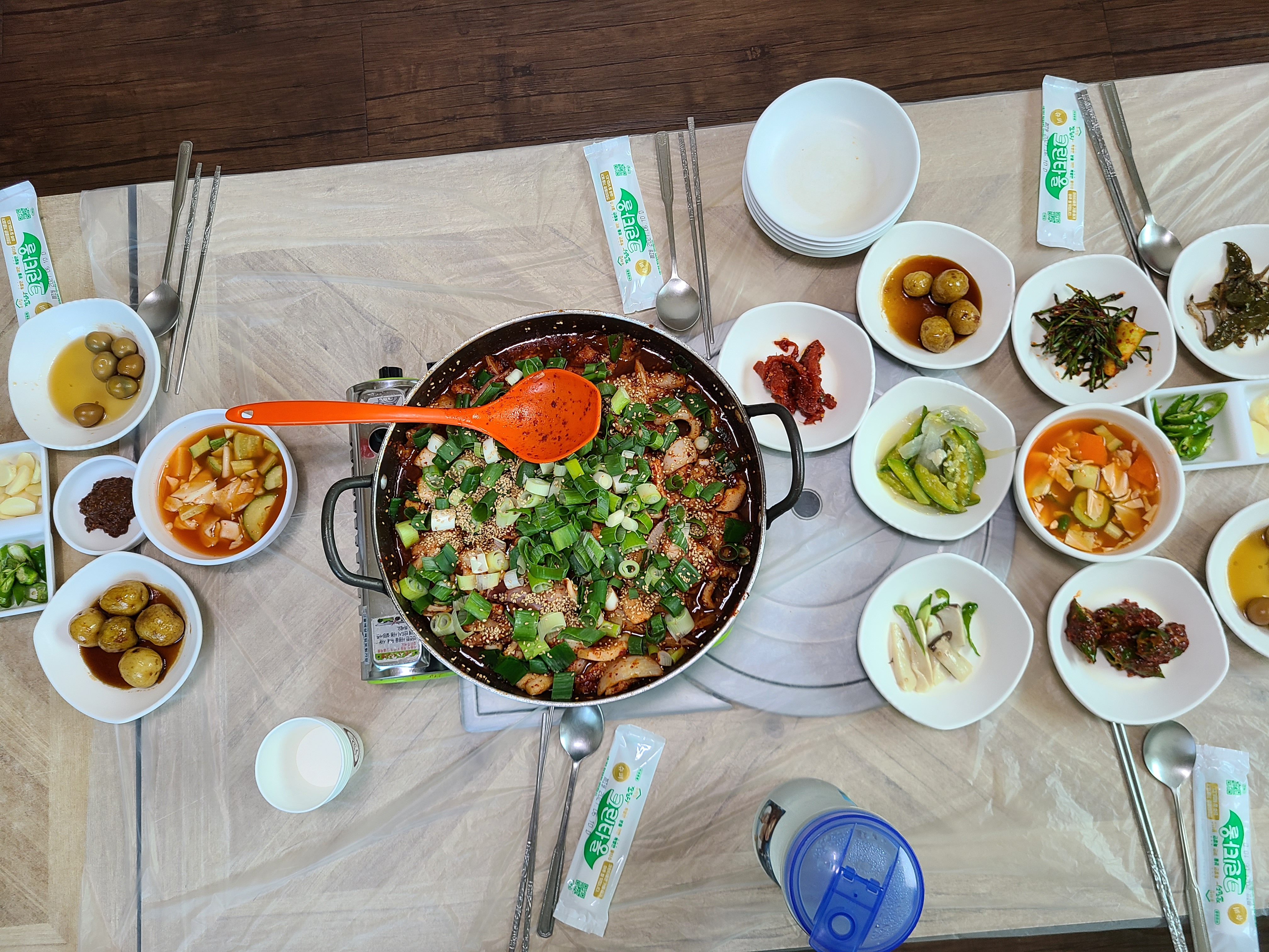 오삼불고기 맛집에서 푸짐하게 점심을 먹는다.