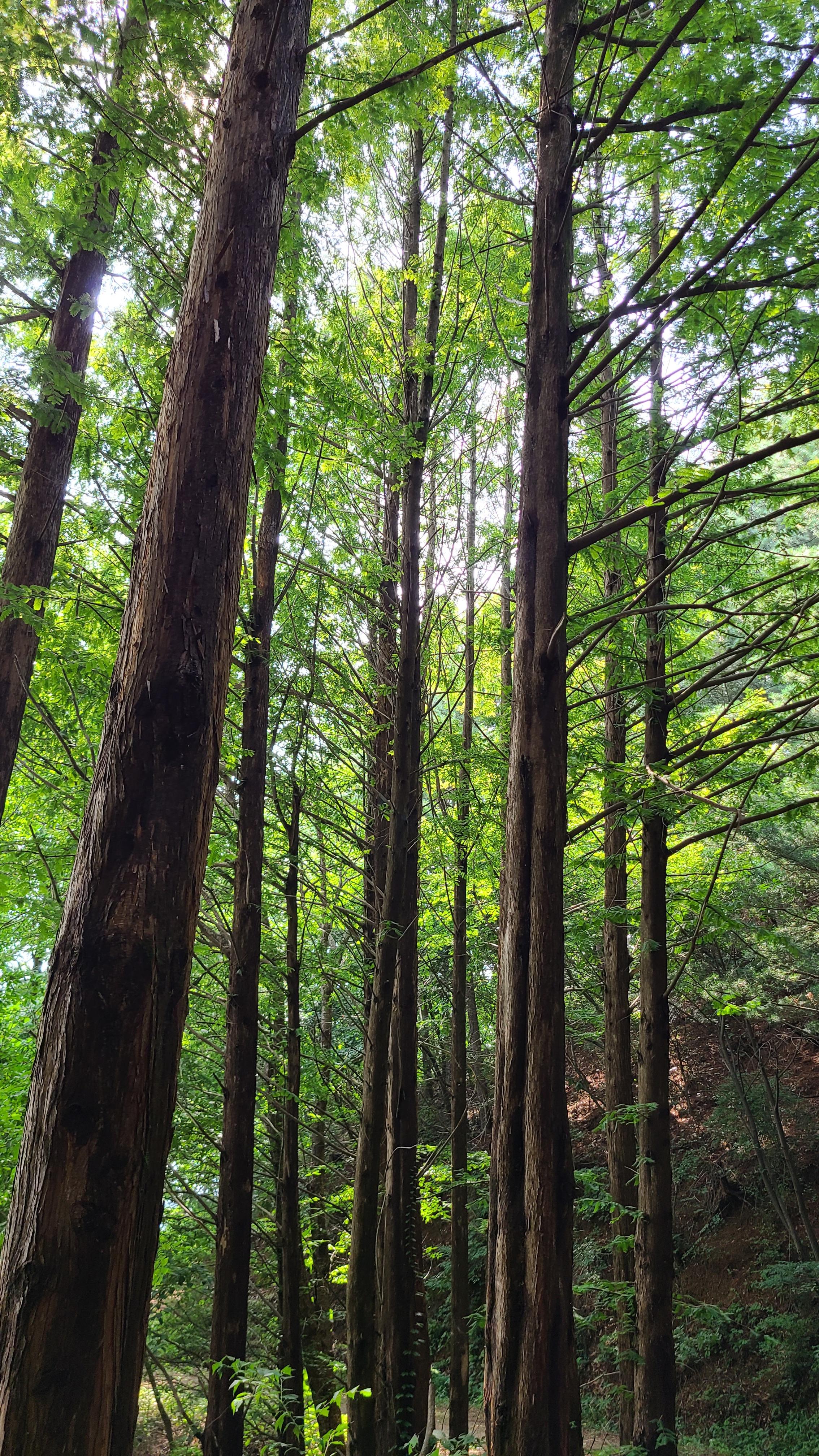 임도를 걷다가 우산을 챙기지 않은것을 알고 다시 주차장으로 돌아와 우산을 챙기고는 걷는다.