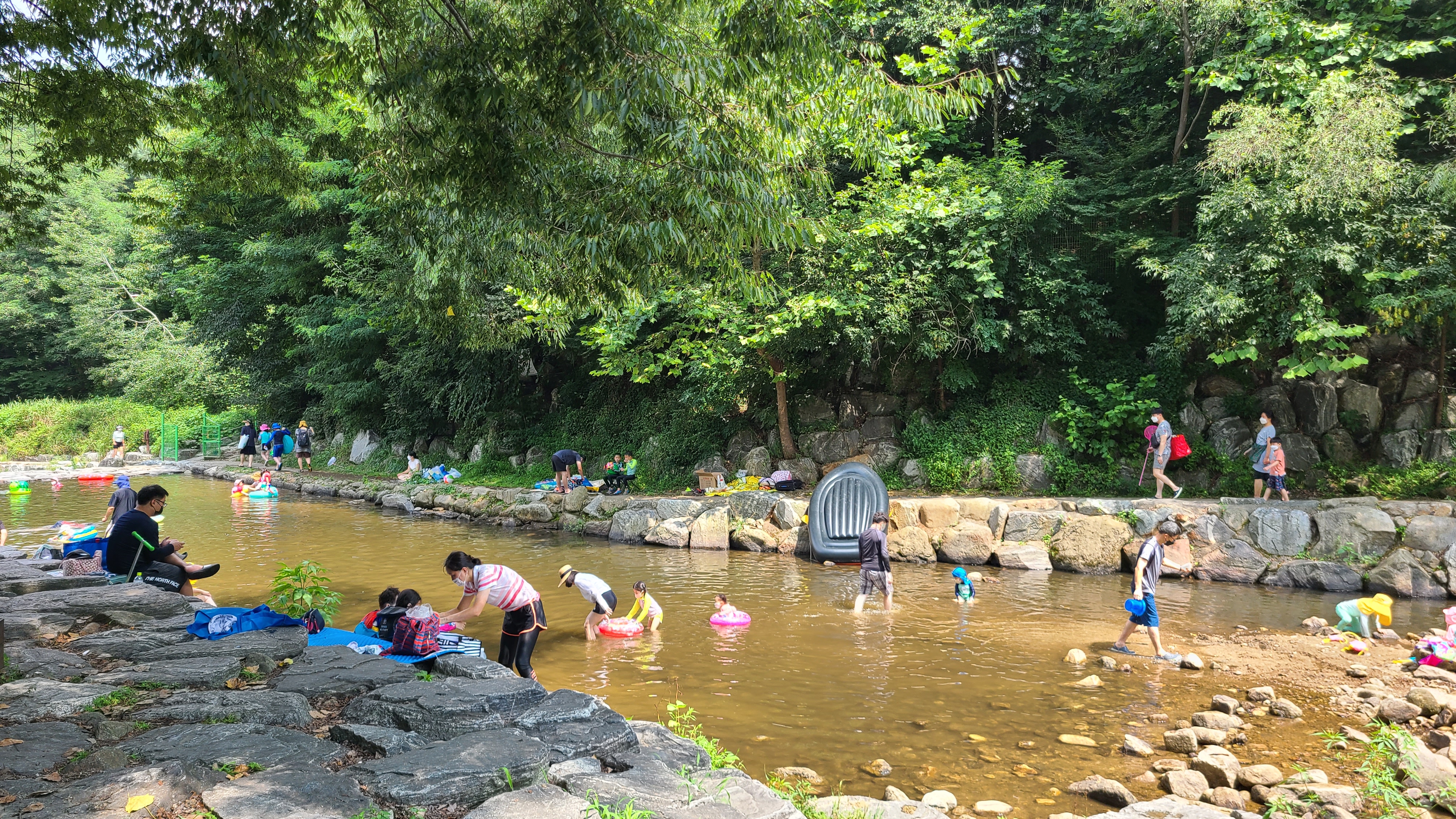 호수공원을 지나니 합류되는 지점이라 물이 조금 고여있어 아이들을 데리고 피서나온