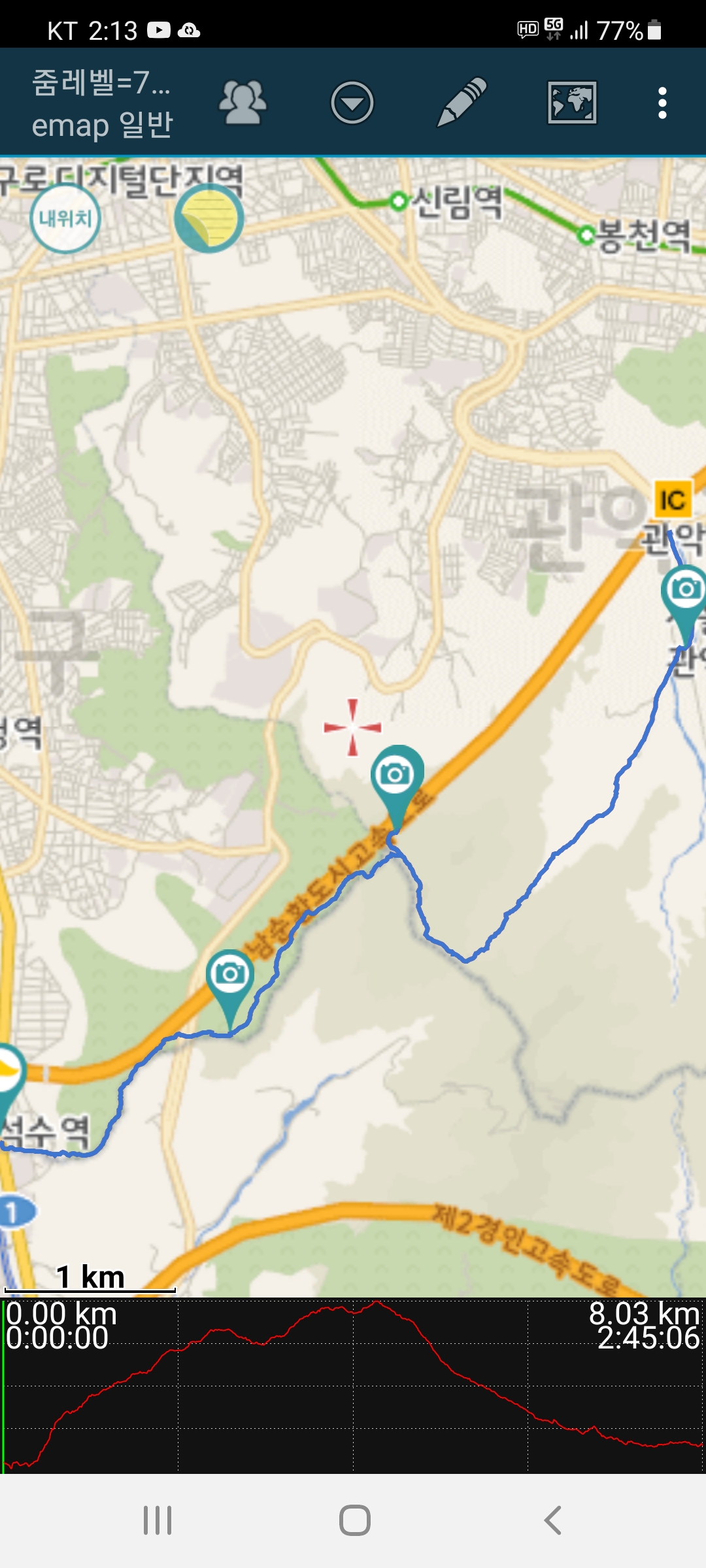 3.석수역-불영암옆-호암산-장군봉-경인교대능선직전-제2광장-호수공원-서울대, 8.03km